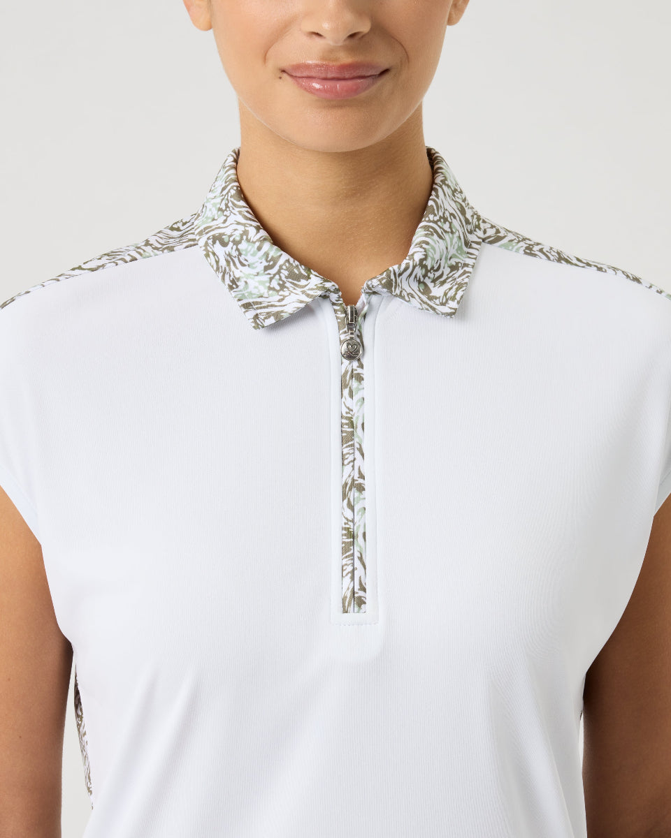 Abstract Swirl Printed Cap Sleeve Polo Shirt