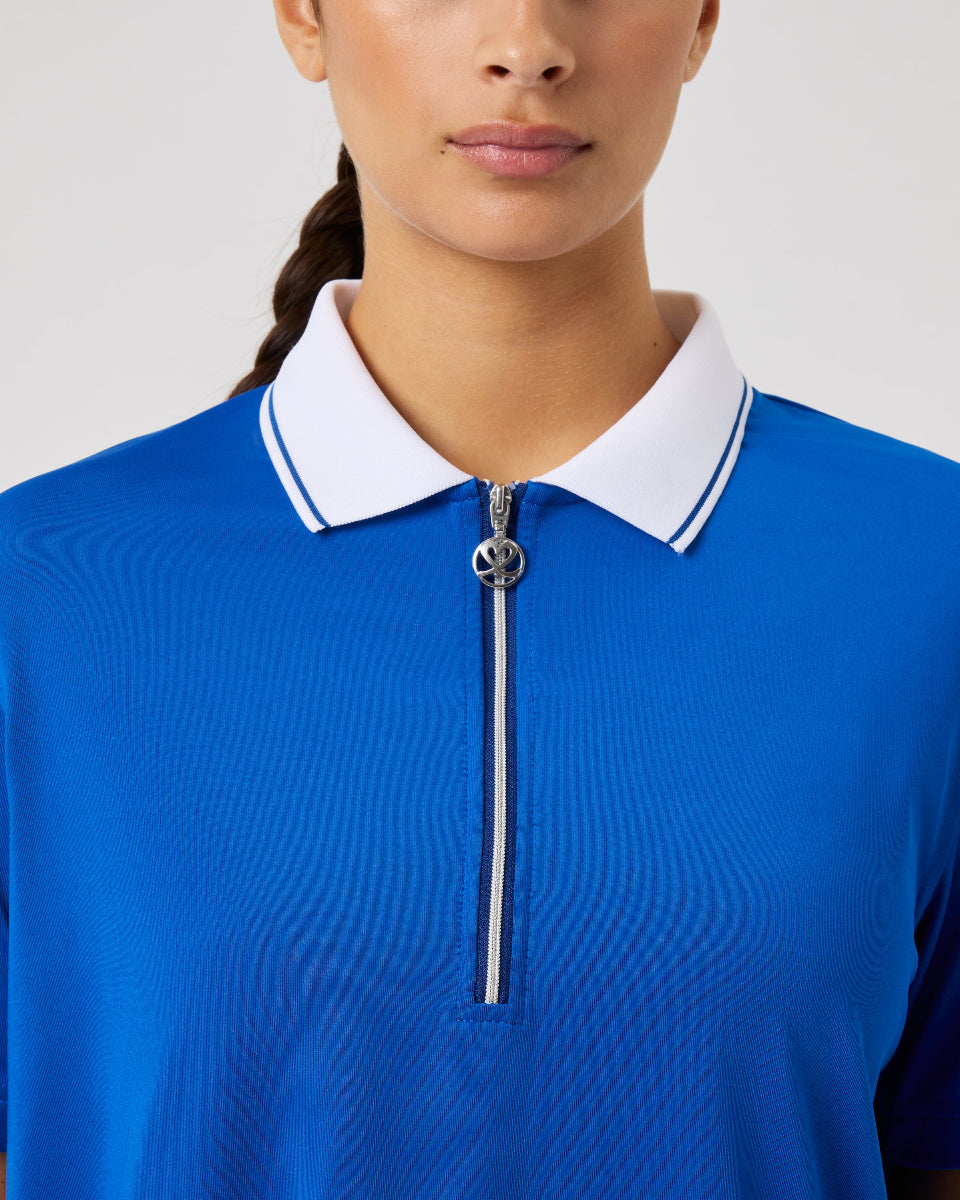 Cropped Mid Blue Short Sleeve Polo Shirt