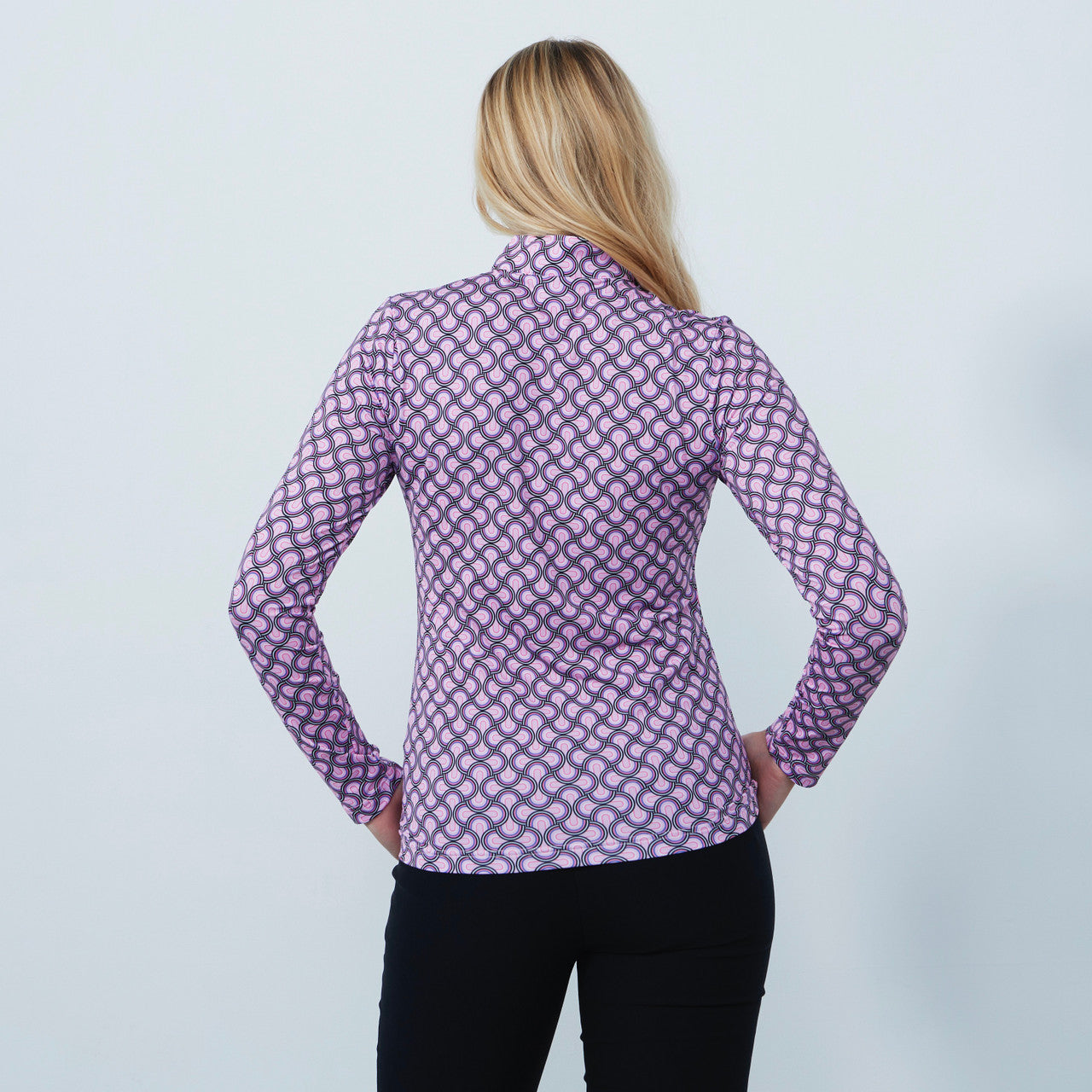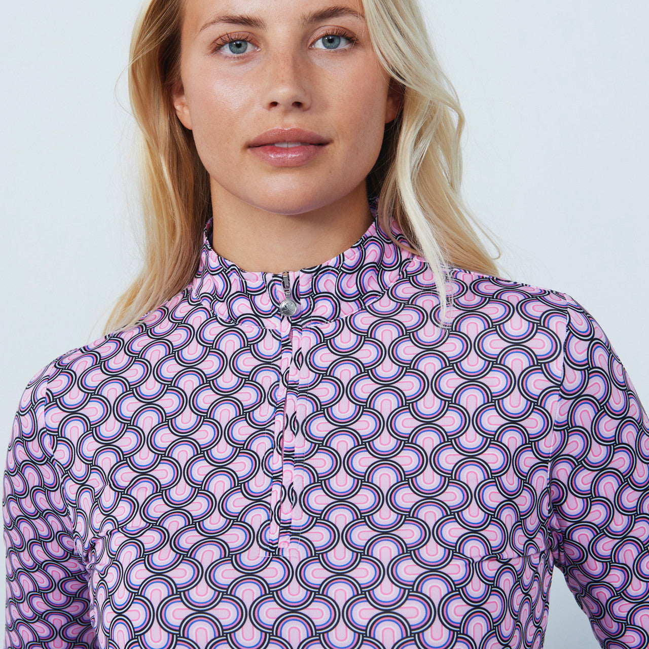 Art is a patterned long-sleeved half neck top in a stretchy fabric from Daily Sports. The material effectively wicks away moisture and dries quickly.  It has a half zip placket at front, stand up collar and an allover print, making Art a functional and fashionable top.