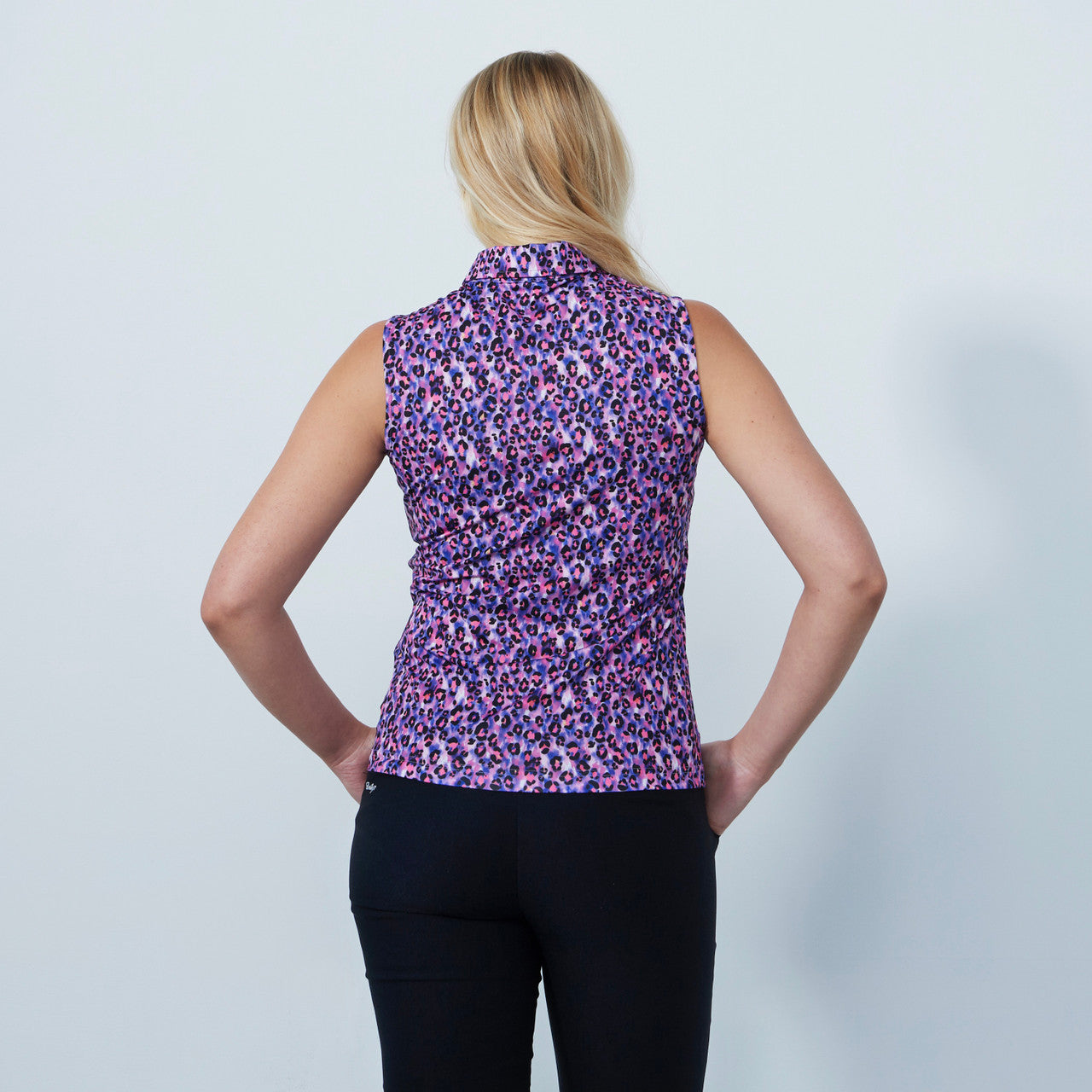 DS Art Bright Leo Pink Animal Print Sleeveless Polo Shirt
