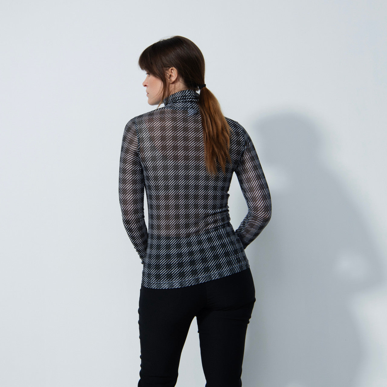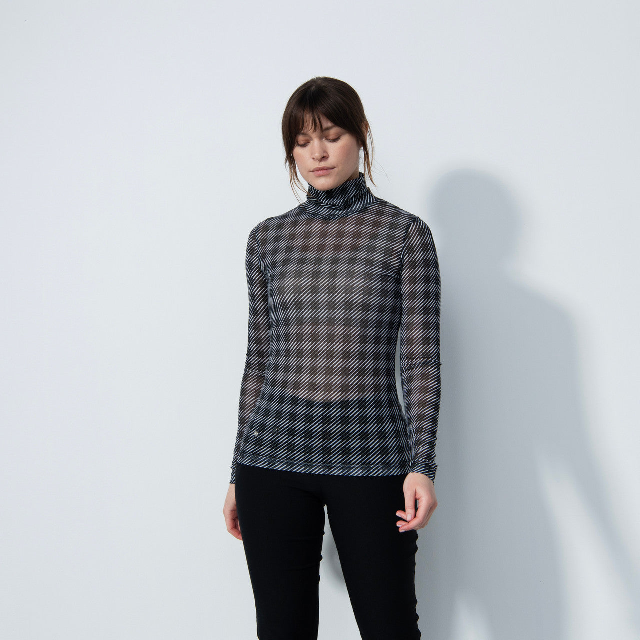 DS Barrie Printed Check Mesh Roll Neck Long Sleeve Top