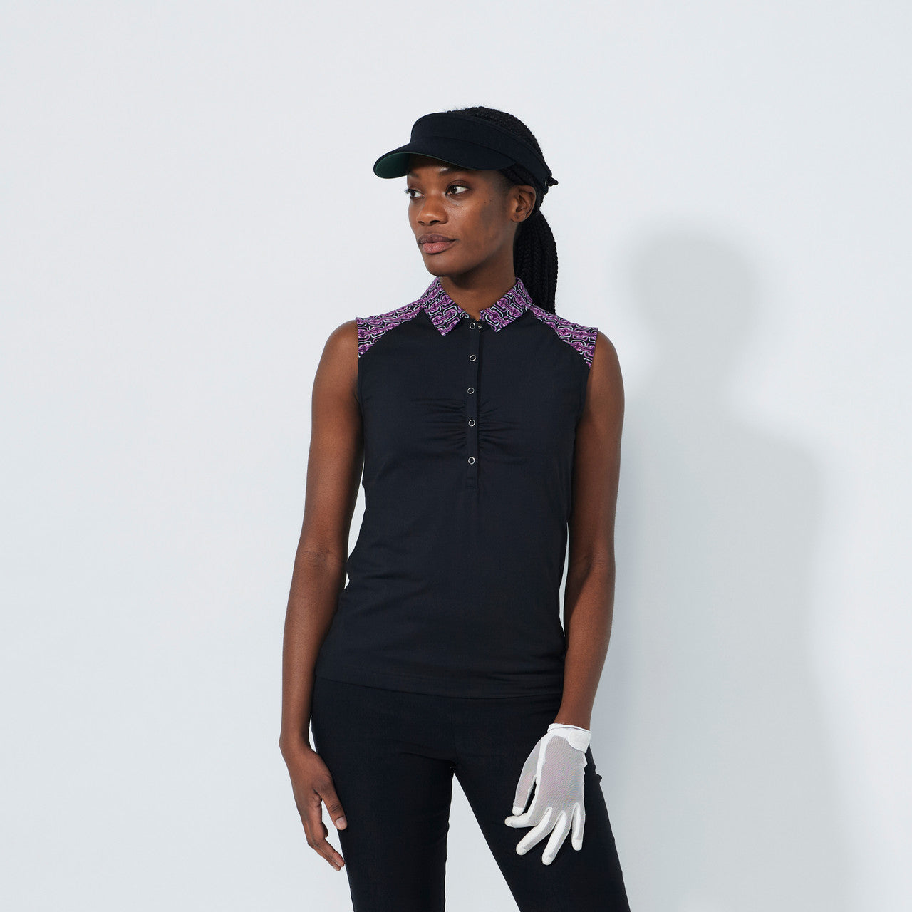 DS Black Gathered Sleeveless Polo Shirt