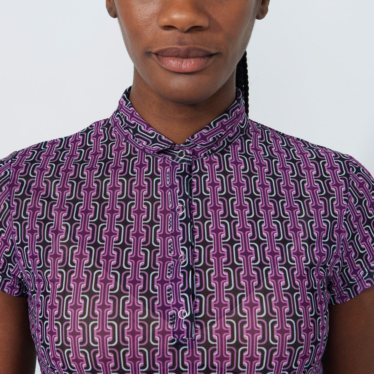 DS Breeze Delusion Black Print Cap Sleeve Mesh Polo Shirt
