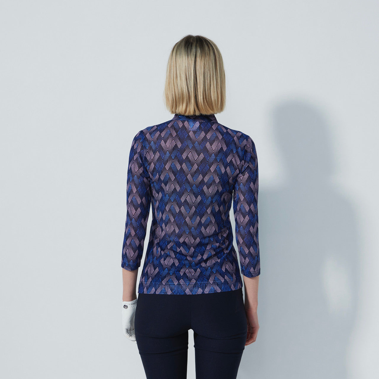 DS Breeze Dot Argyle Navy Pink Print 3/4 Sleeve Mesh Polo Shirt