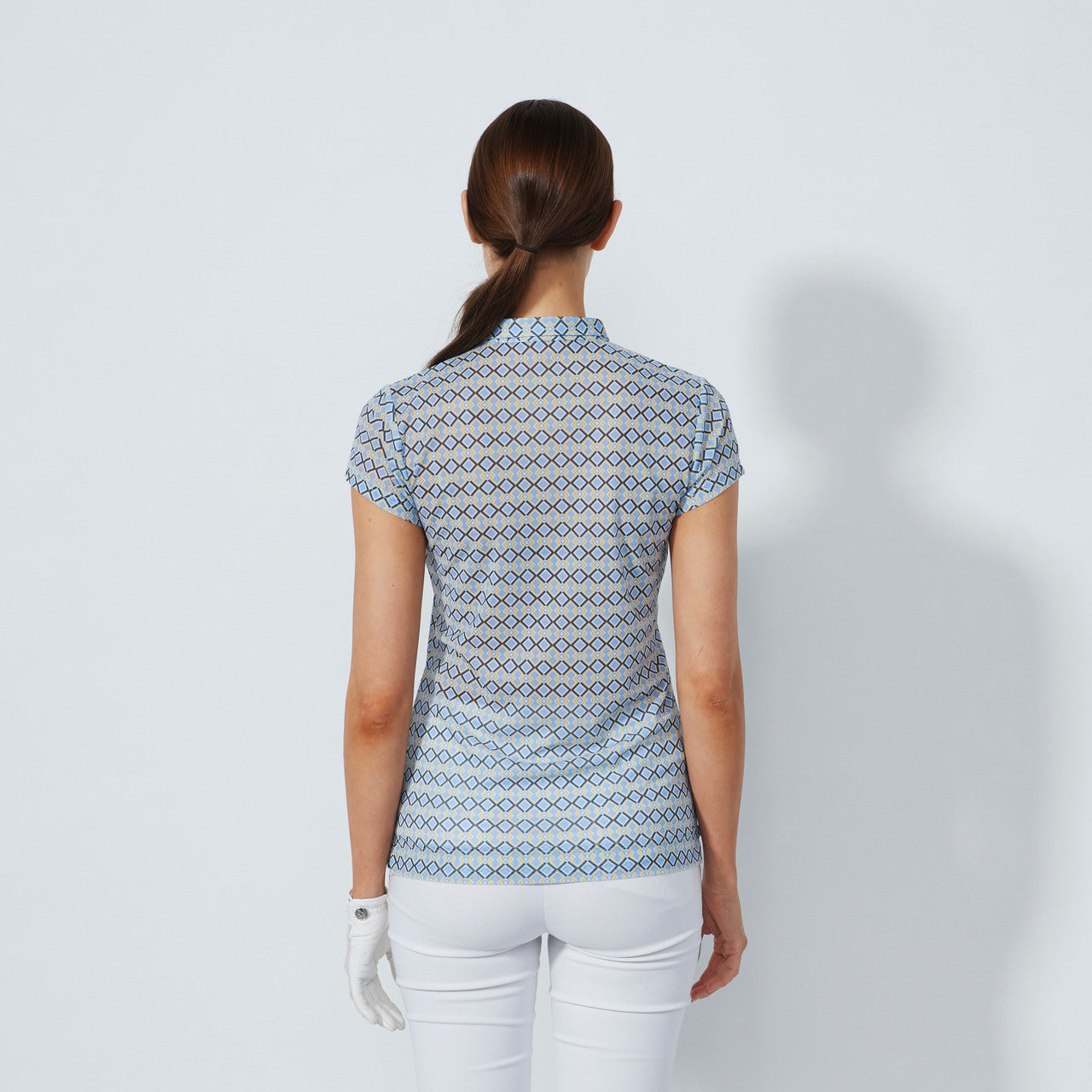 DS Breeze Kaleidoscope Print Cap Sleeve Mesh Polo Shirt