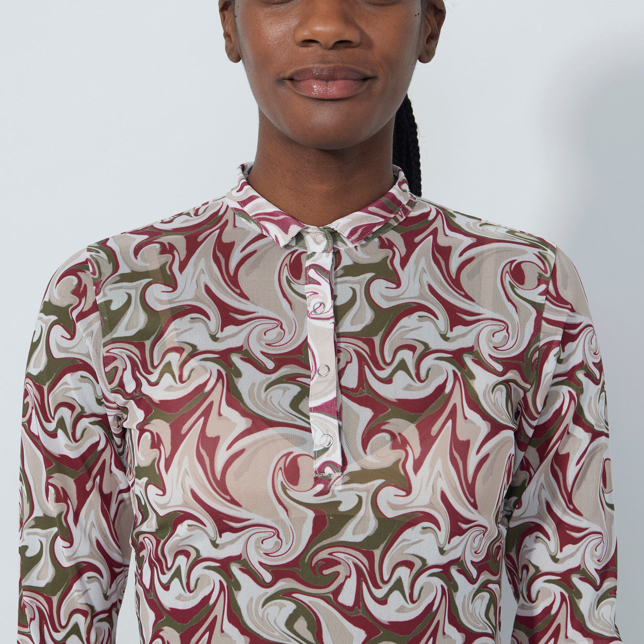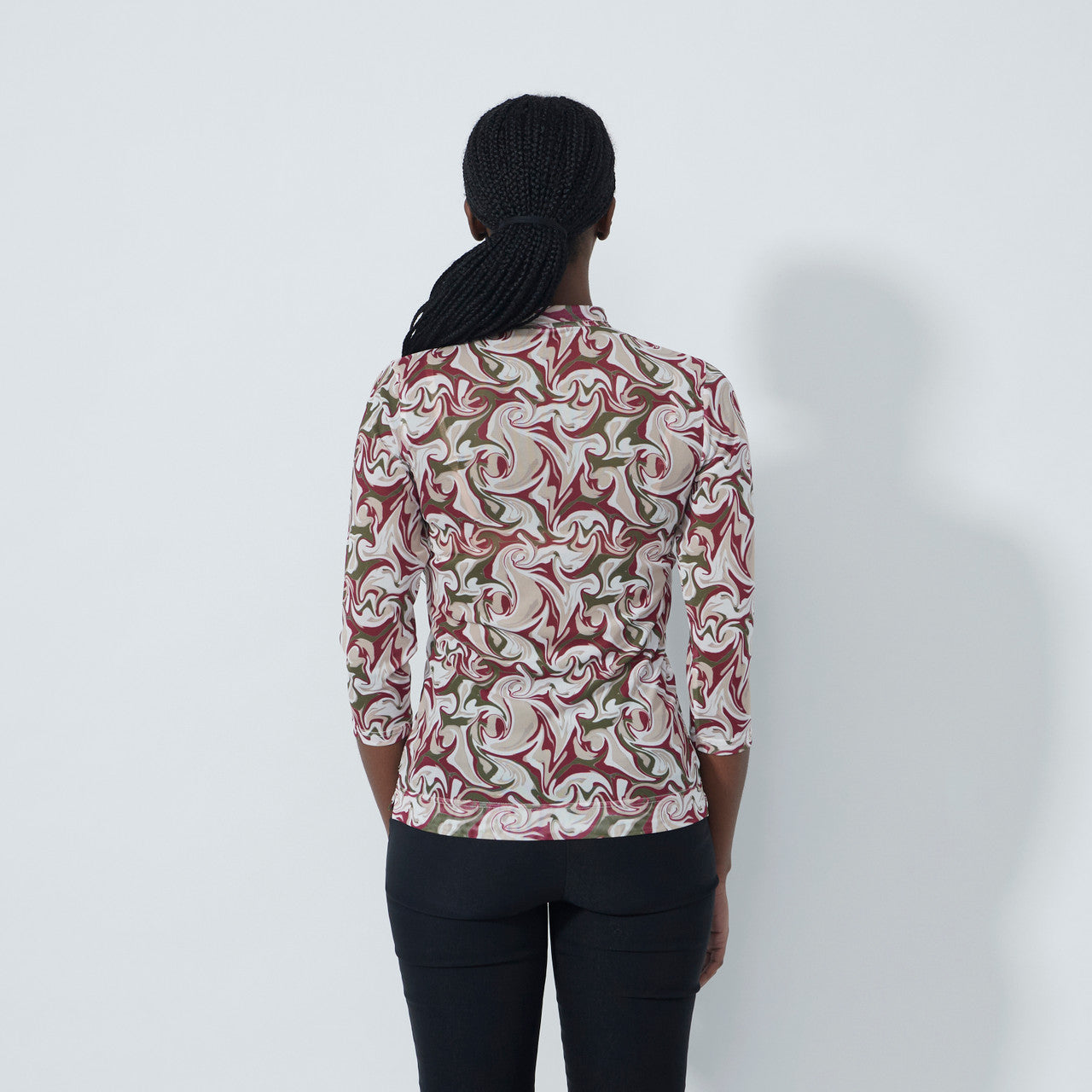 DS Breeze Swirl Print 3/4 Sleeve Mesh Polo Shirt