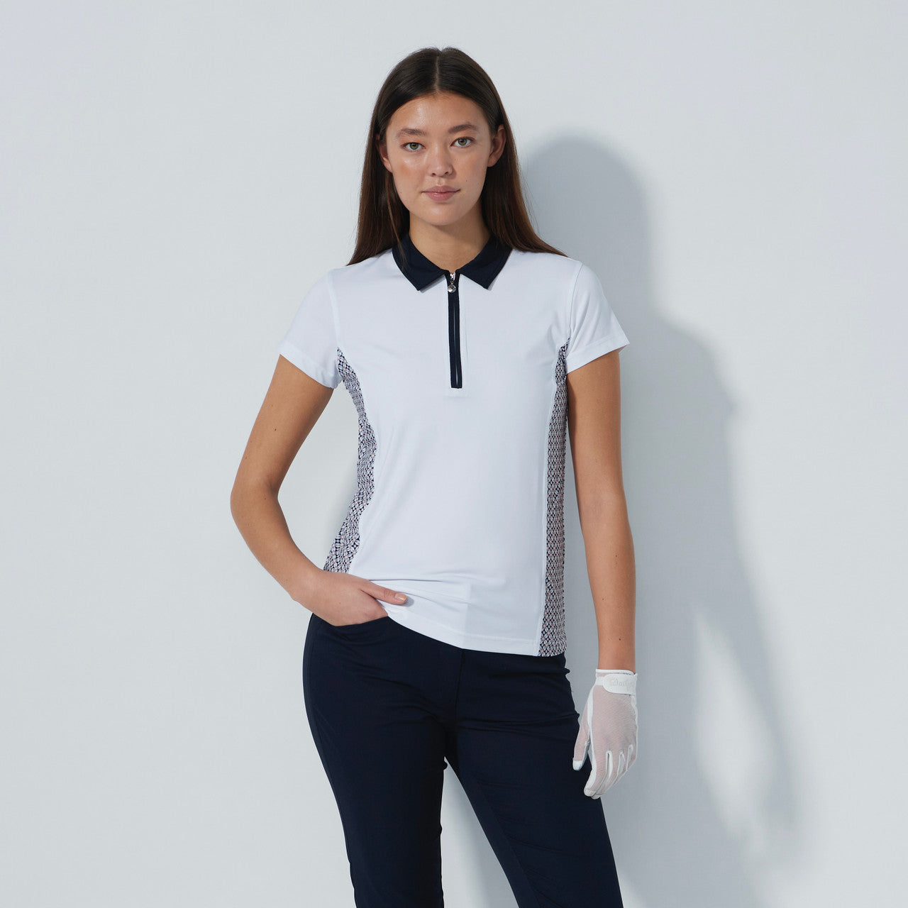 The Edge cap sleeve polo shirt brings a sophisticated edge to your golf wardrobe. With its cap sleeve silhouette and structured jersey accents at the side panels, this top is crafted from a stretchy polyester-elastane blend for a comfortable, moisture-wicking fit. Ideal for both performance and leisure, it delivers exceptional comfort while maintaining a polished look.