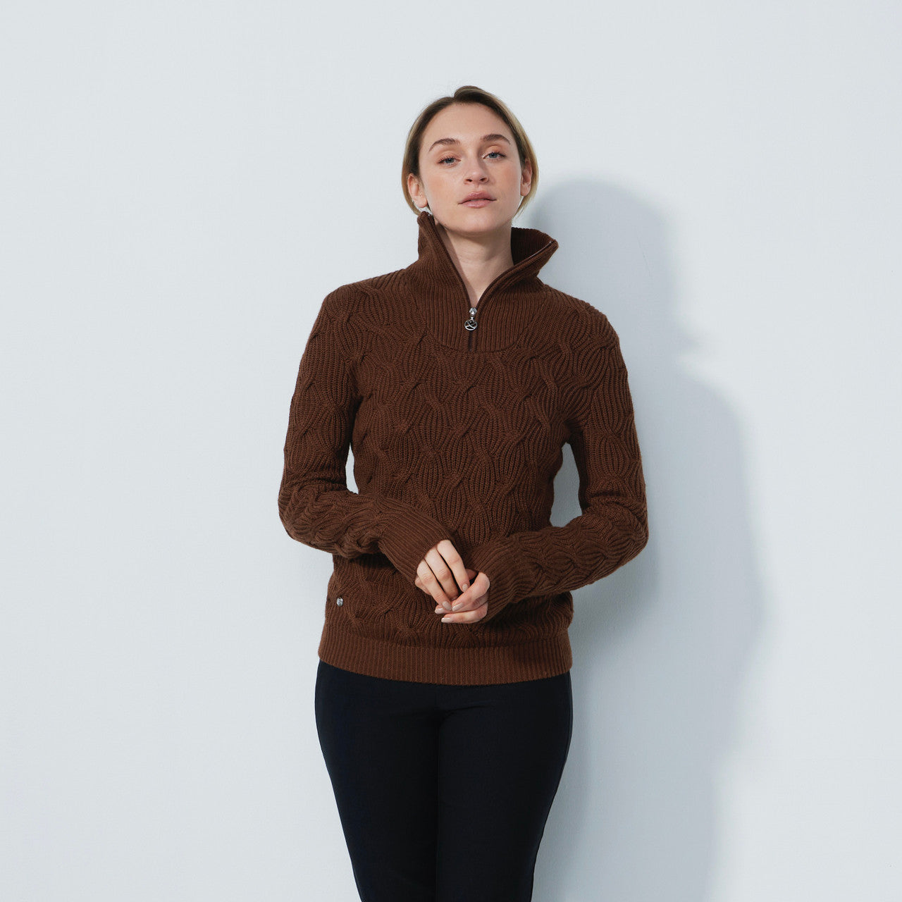 Ermont lined pullover is an extra warm, knitted golf top with stylish details. It has a warm, wind-resistant lining, ribbed cuffs and a stand-up collar with zip. The back is stocking stitch, while the front features a decorative cable-knit pattern. Ermont pullover is also available unlined.
