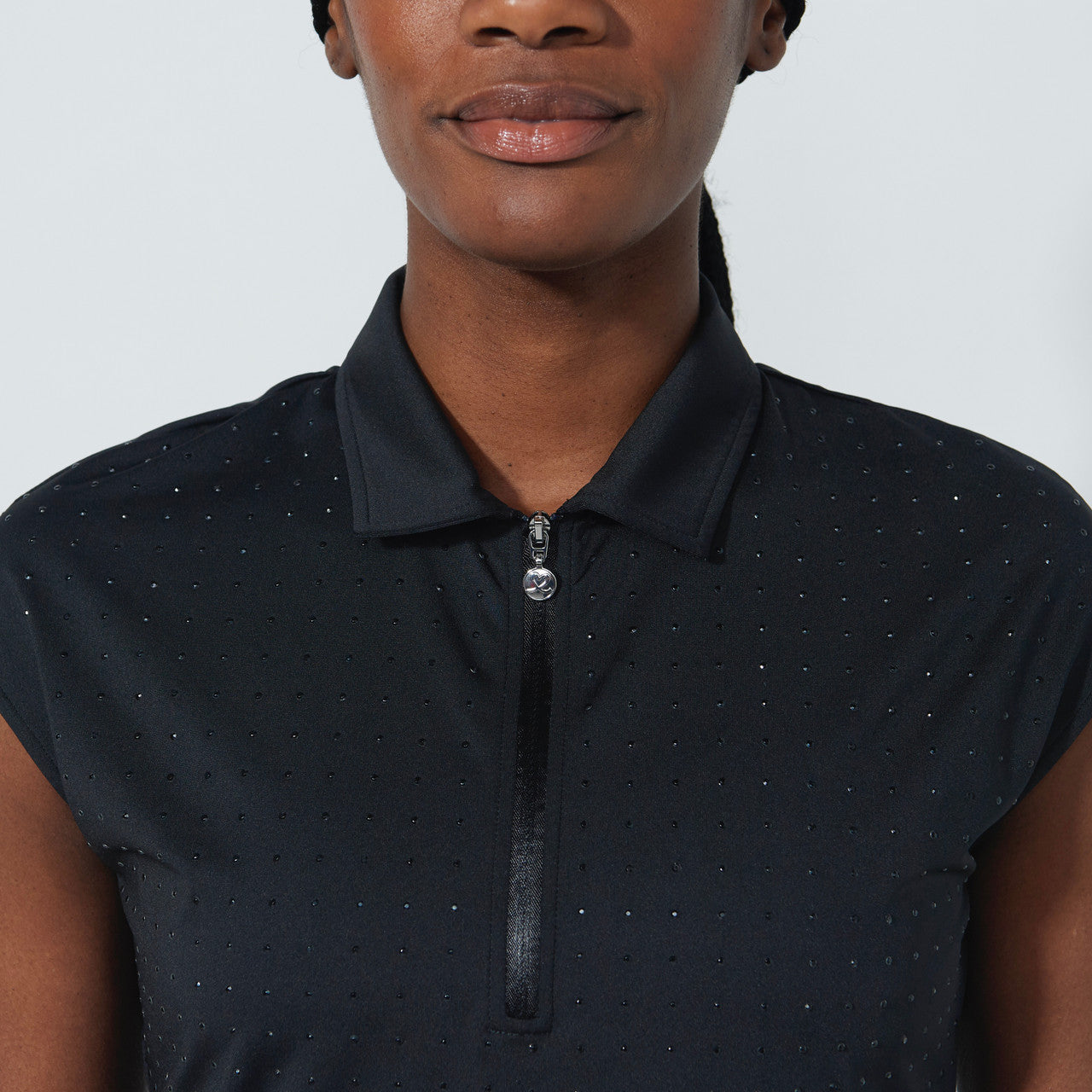DS Gaze Black Rhinestone Cap Sleeve Polo Shirt