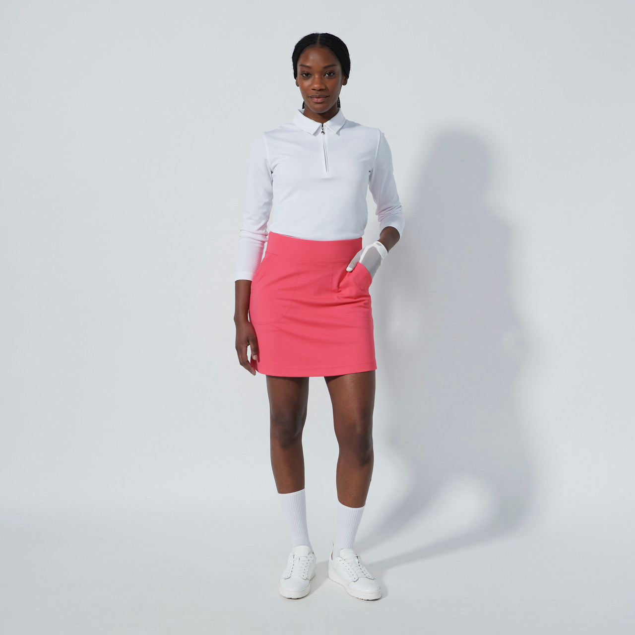 Genua is a pull on golf skort with matching built in short for comfort and freedom of movement.  Made in crease free, permanent press fabric.  Two front pockets and one back pocket.