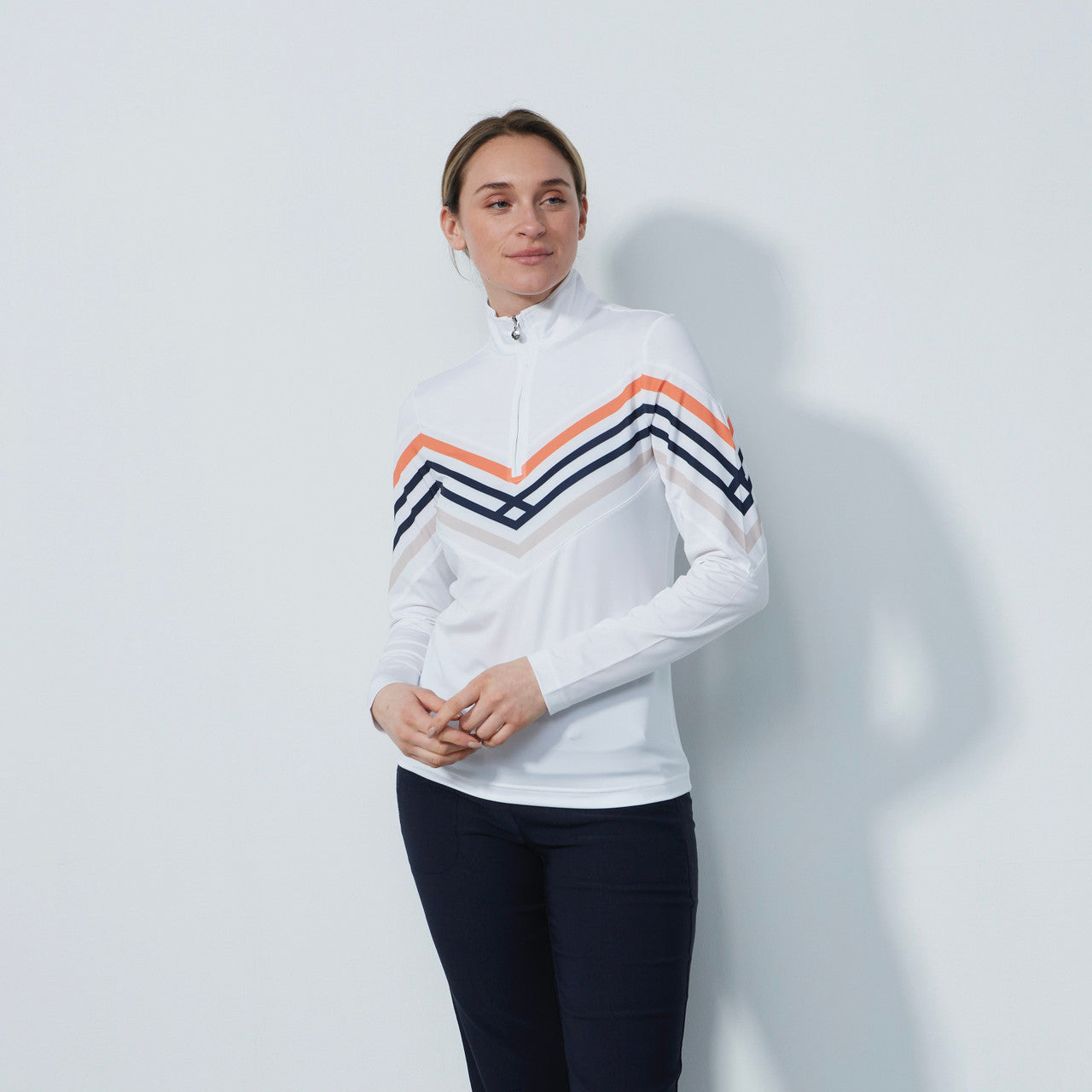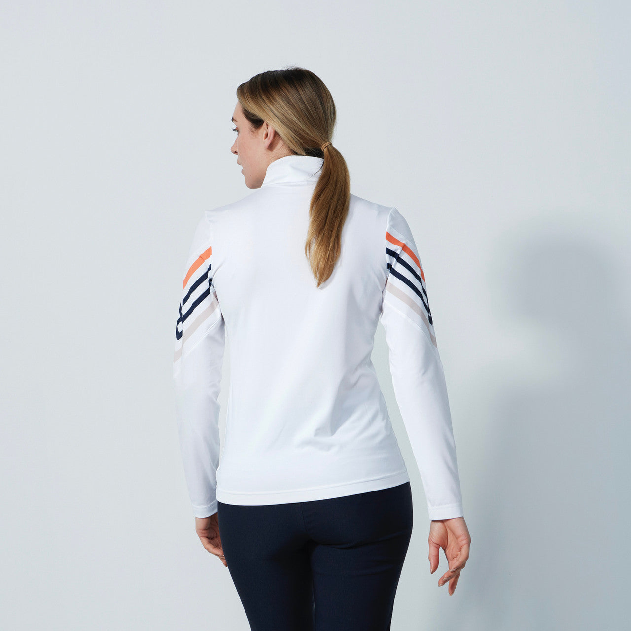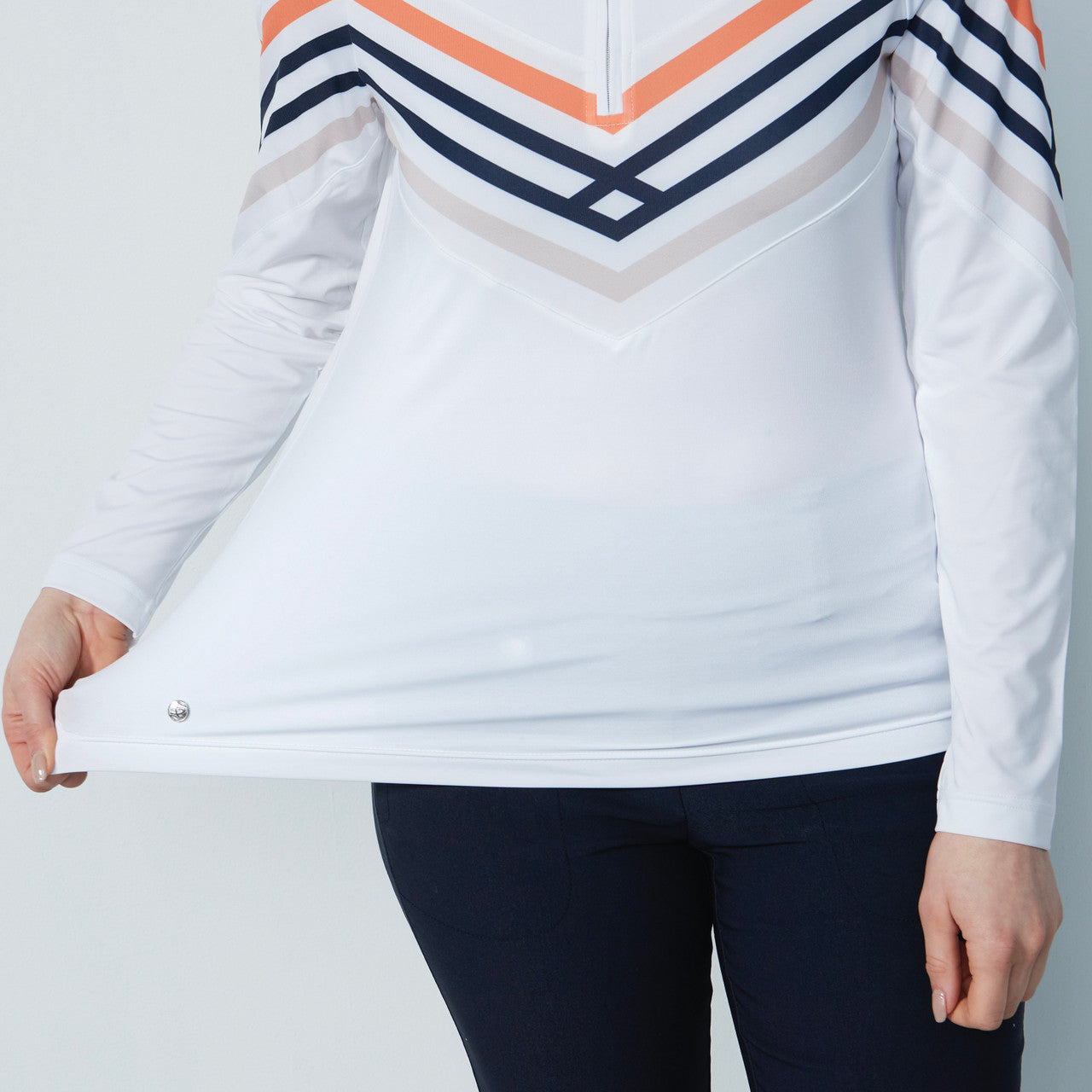 DS Halifax White Print Stripe Long Sleeve Polo