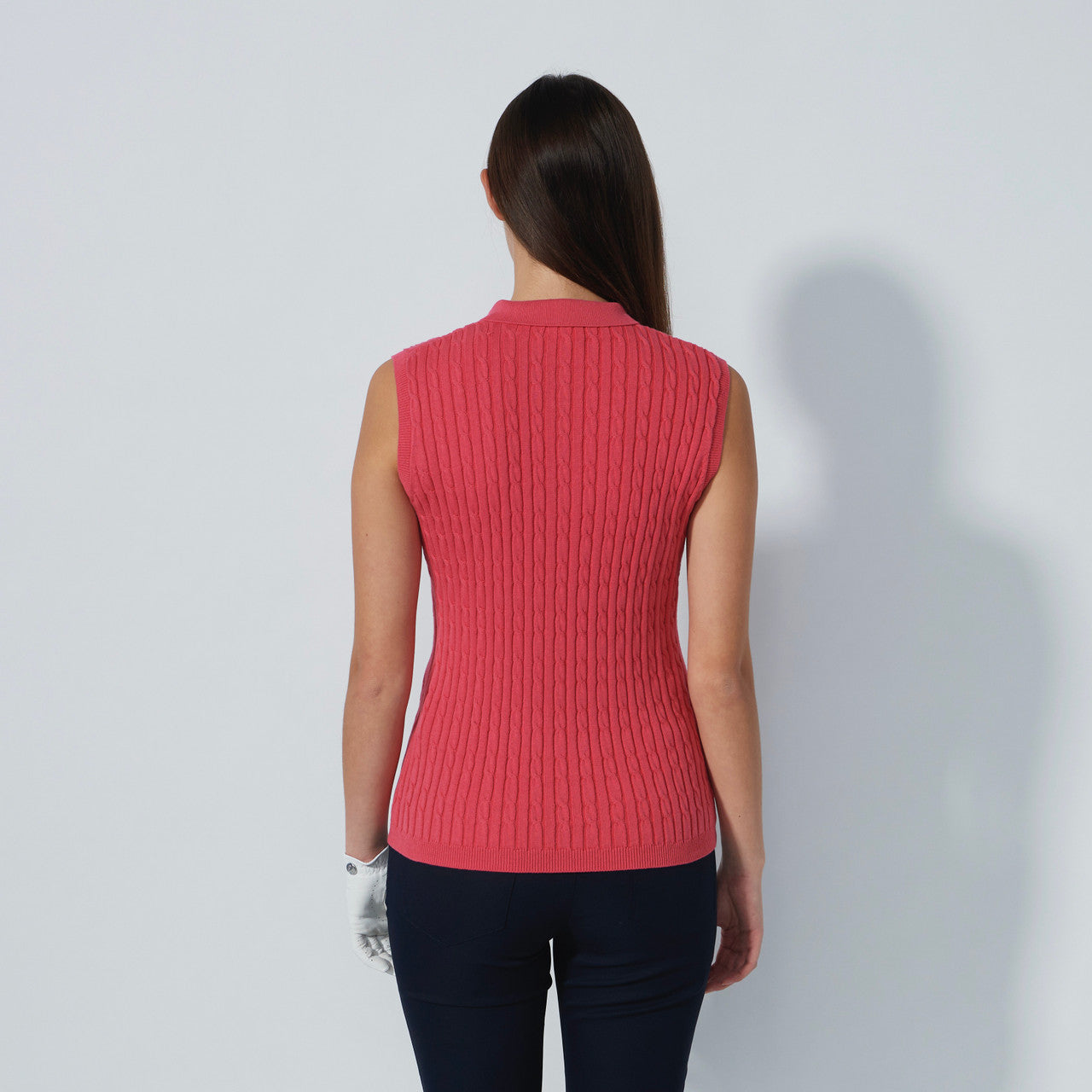 DS Intense Coral Cable Knit Sleeveless Polo Shirt