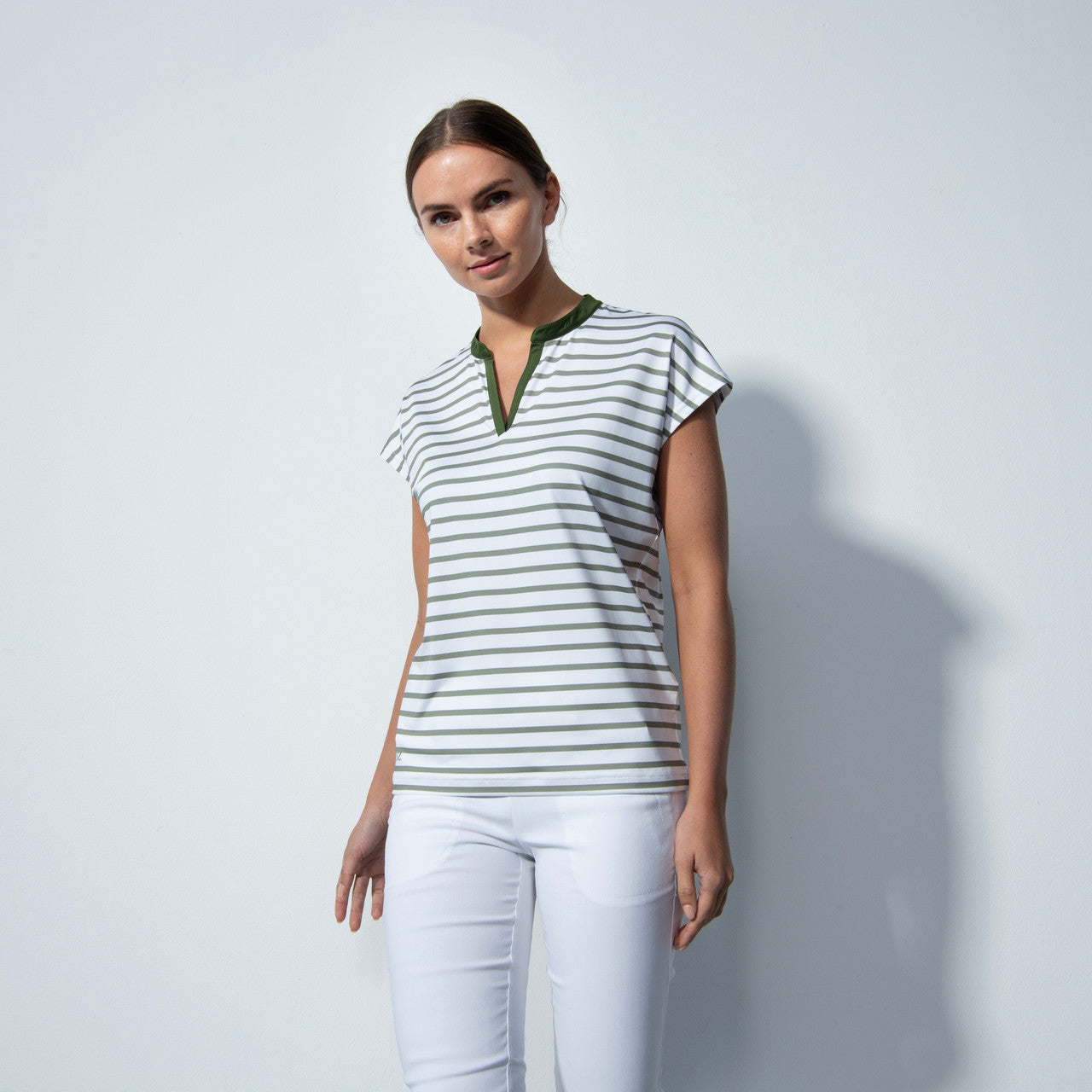 DS Itami Khaki Green Stripe Cap Sleeve Polo Shirt
