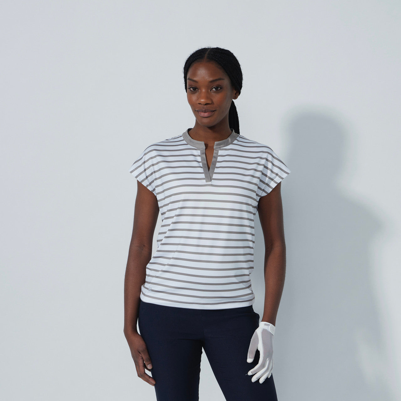 DS Itami Taupe Stripe Print Cap Sleeve Polo Shirt