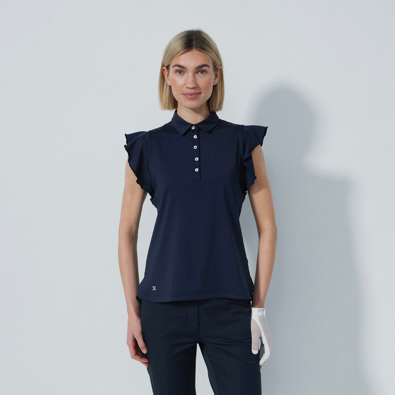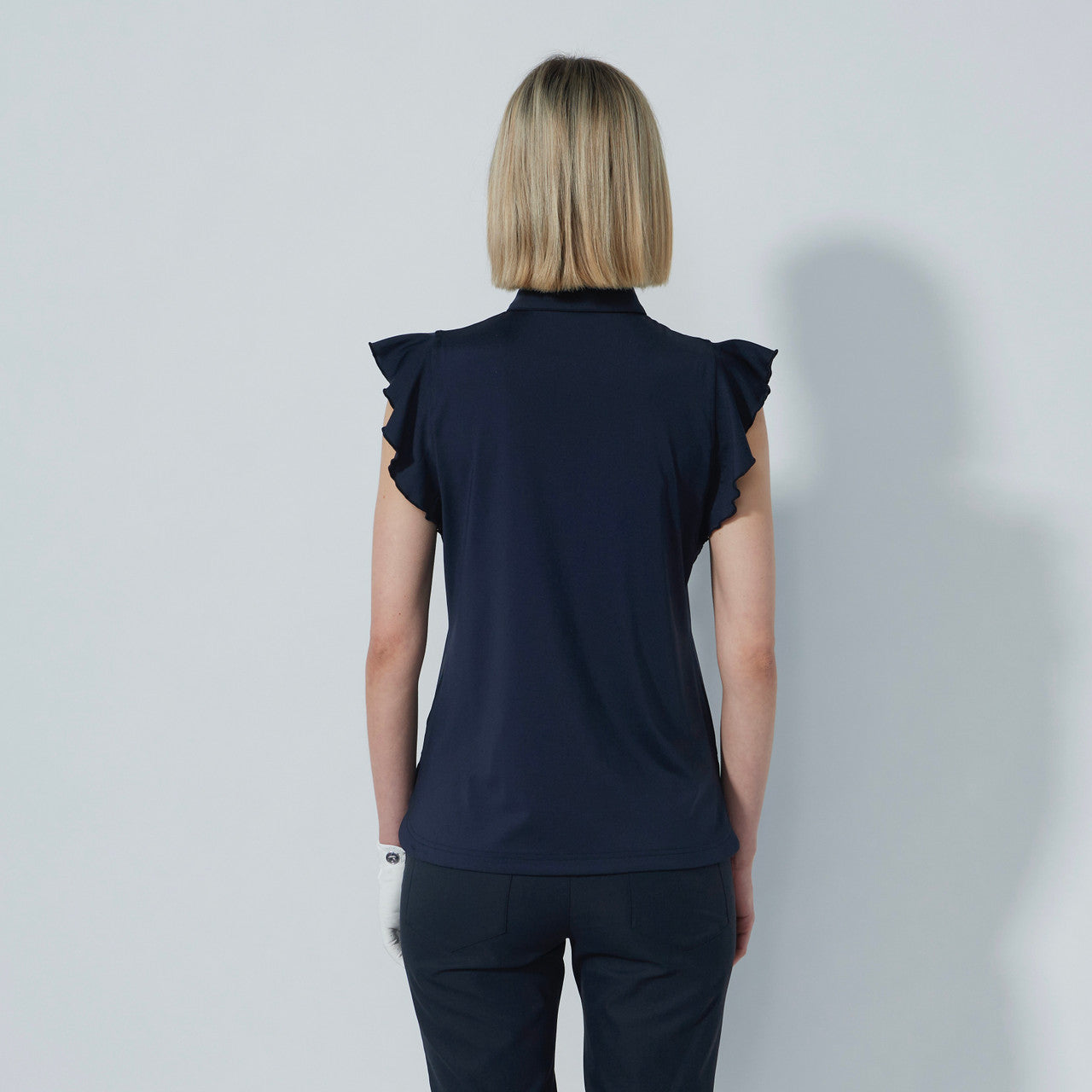 DS Luxe Dark Navy Frill Sleeveless Polo Shirt