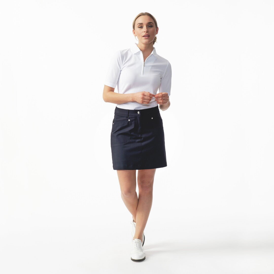 Wearing a comfortable skirt gives a sense of freedom. Lyric golf skirt has inner shorts, an elastic waistband and comfortable, stretch fabric so you feel smart and can still move freely. The wind- and water-repellent fabric is wrinkle-free and quick-drying. A confident style that lets you focus on your game.