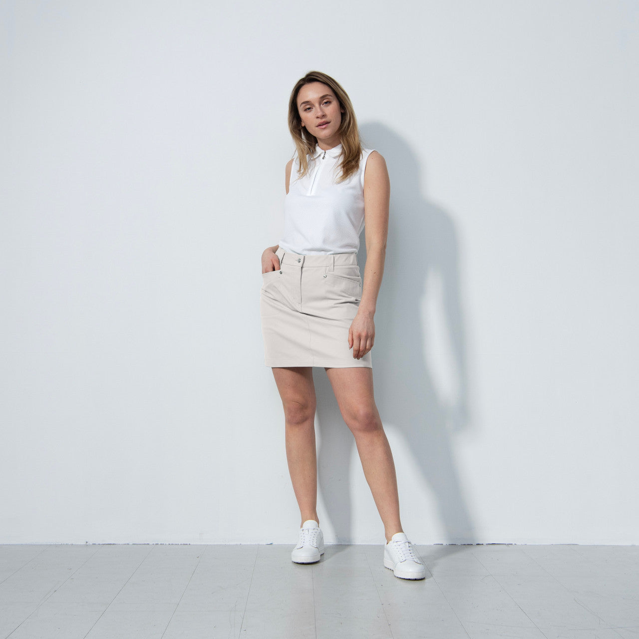 Wearing a comfortable skirt gives a sense of freedom. Lyric golf skirt has inner shorts, an elastic waistband and comfortable, stretch fabric so you feel smart and can still move freely. The wind- and water-repellent fabric is wrinkle-free and quick-drying. A confident style that lets you focus on your game.