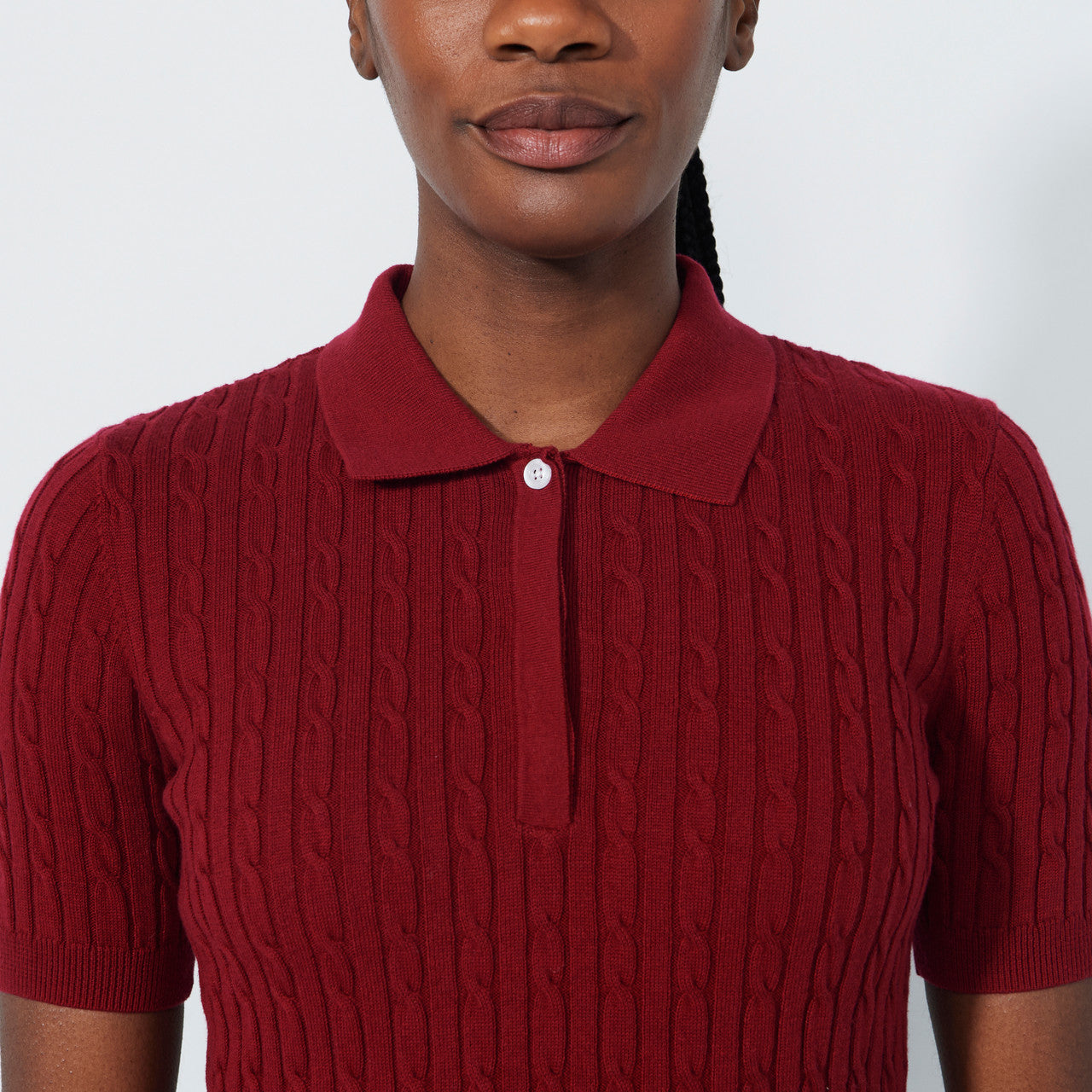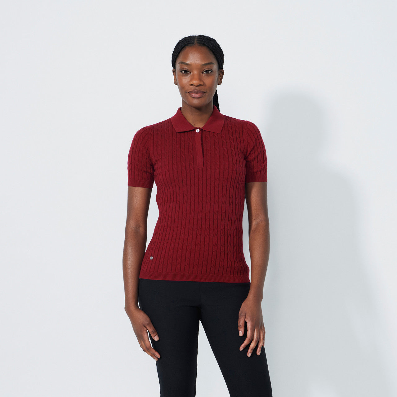 DS Madelene Winery Cable Knit Short Sleeve Polo Shirt