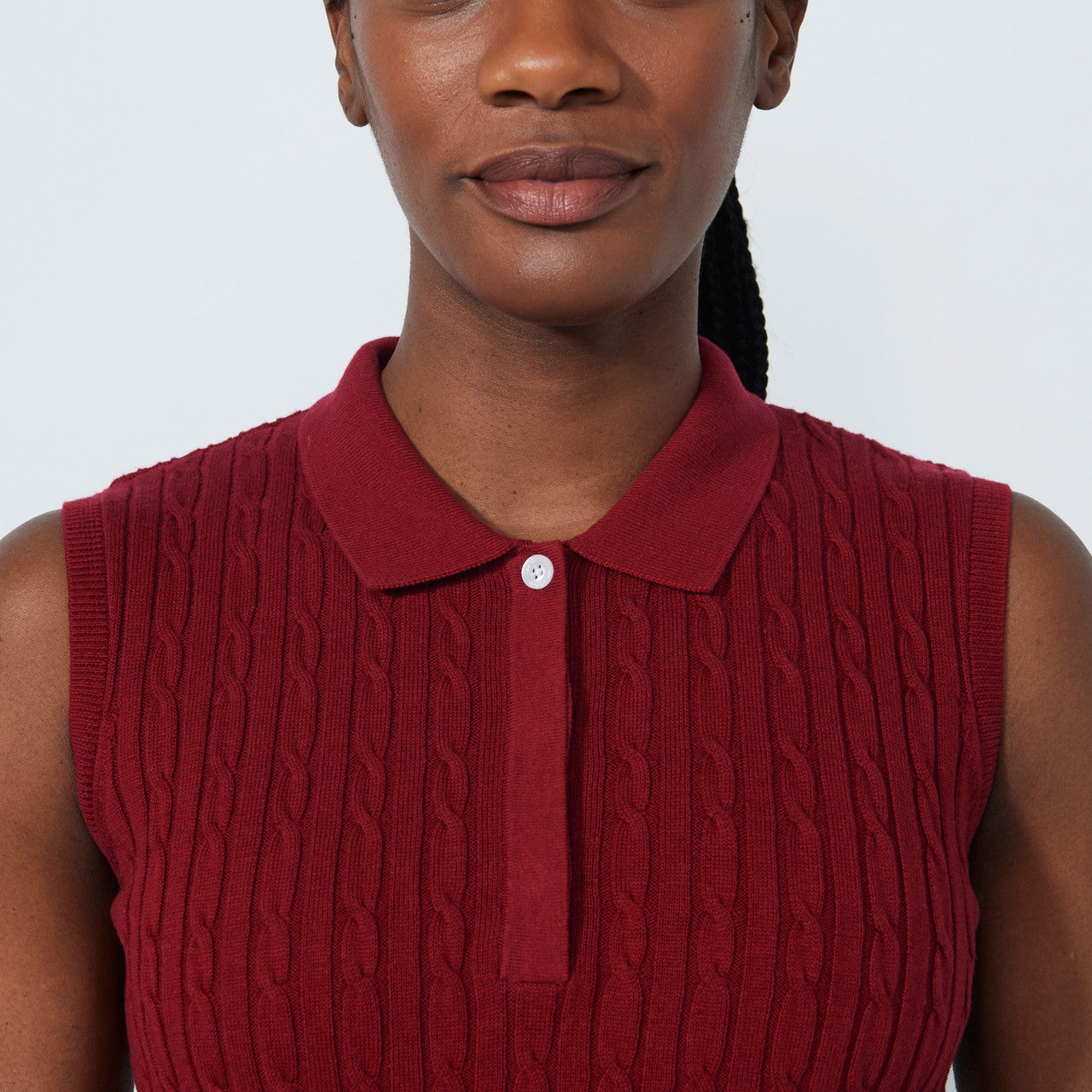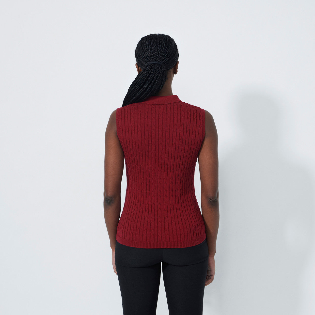 DS Madelene Winery Cable Knit Sleeveless Polo Shirt