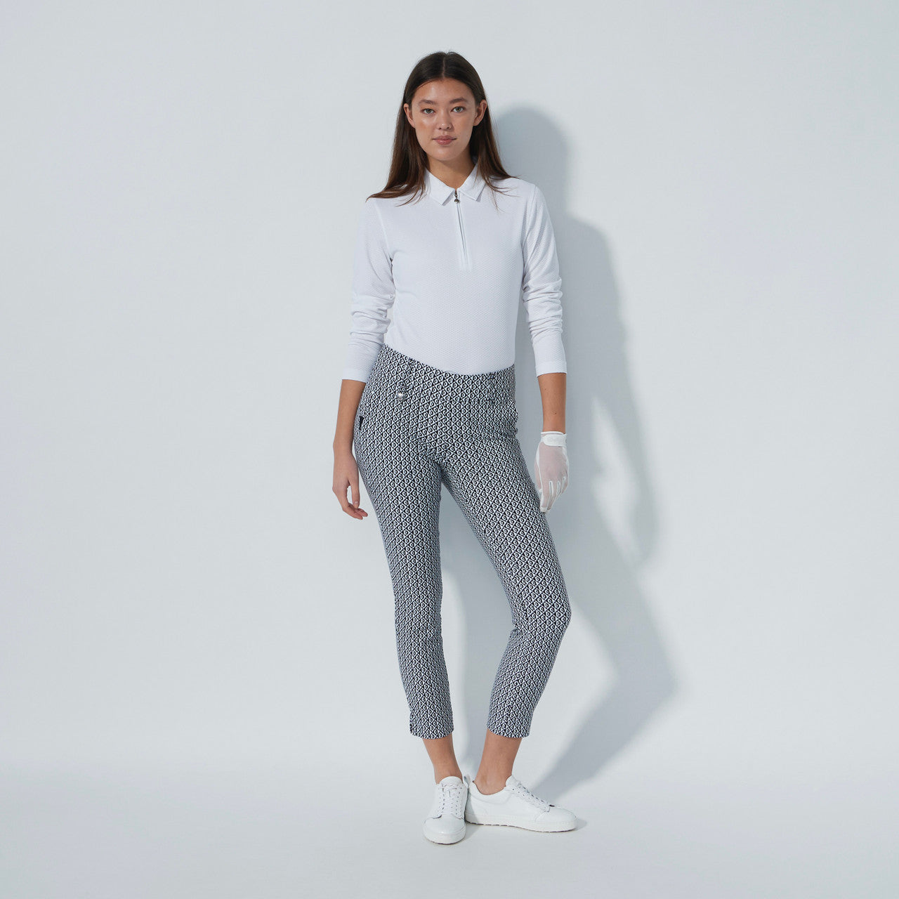 DS Magic Motif Diamond Black and White Print Ankle Pants
