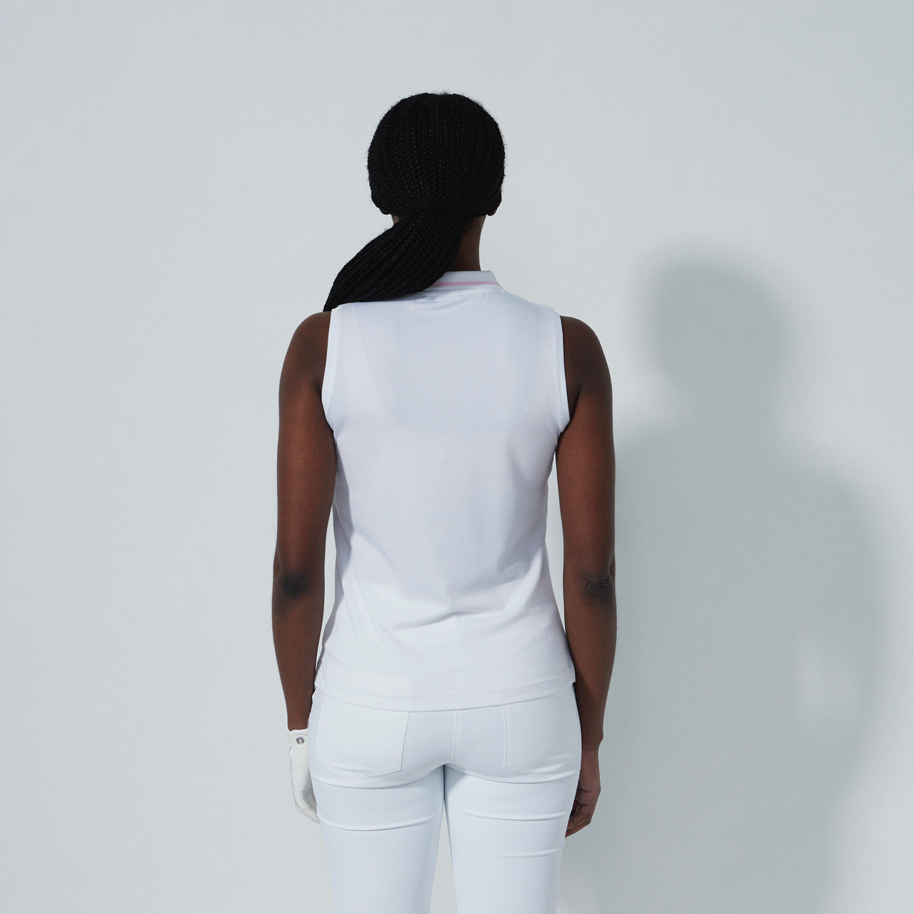 DS Match Pink Yellow Color Block Sleeveless Polo Shirt
