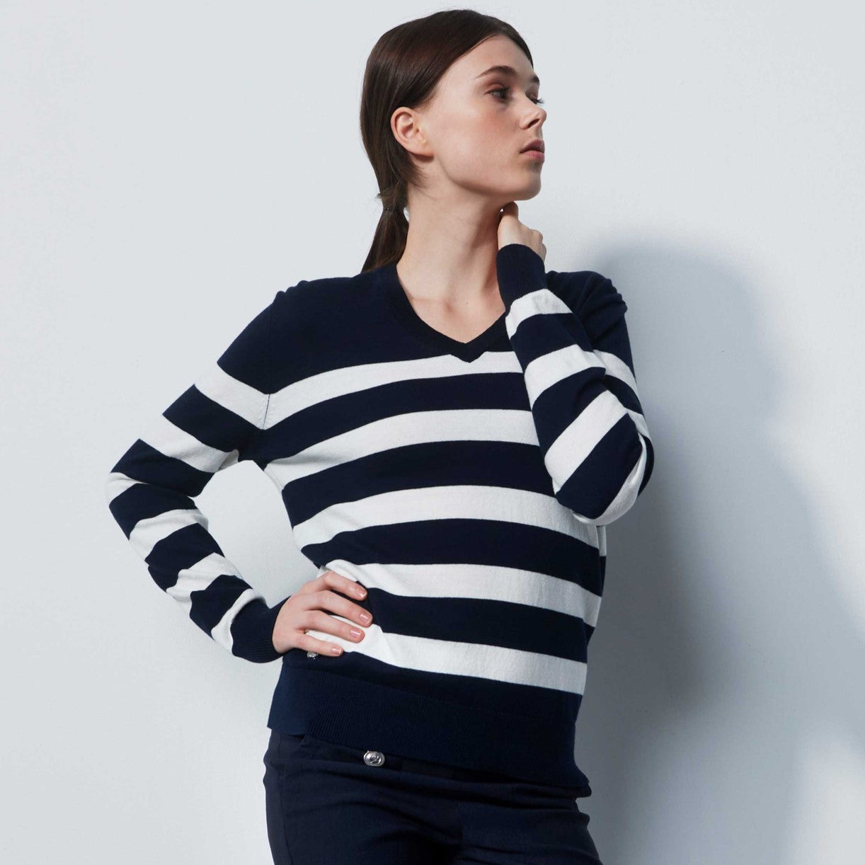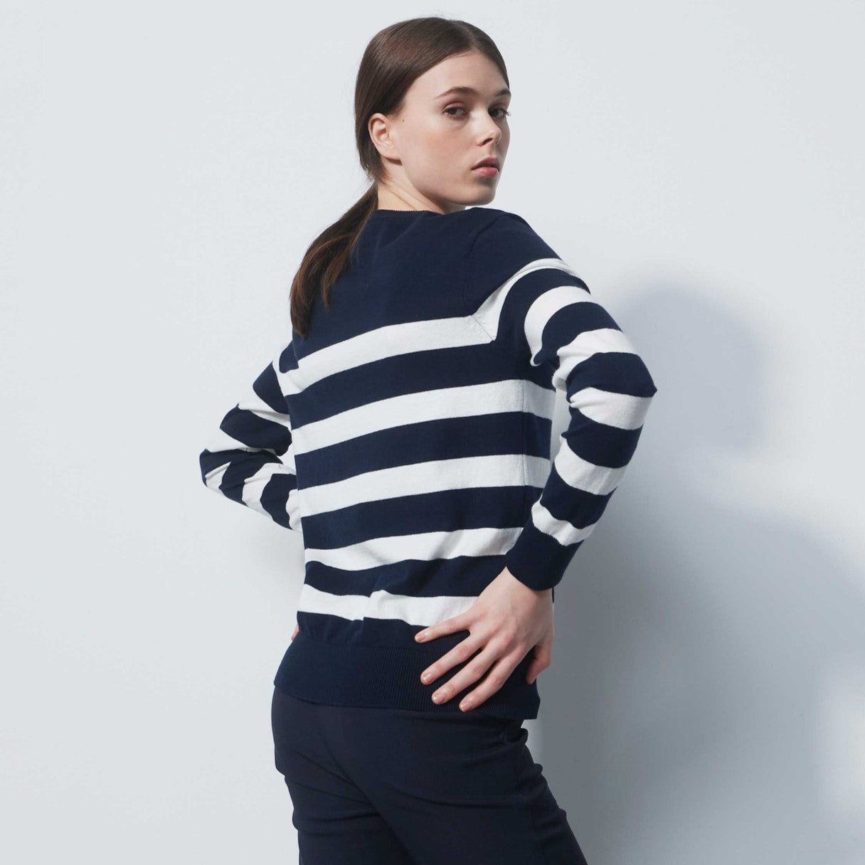 DS Navy White Striped Knit Sweater