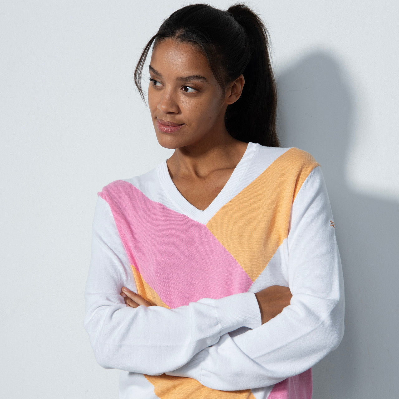 DS Orange Pink Pullover V-Neck Sweater