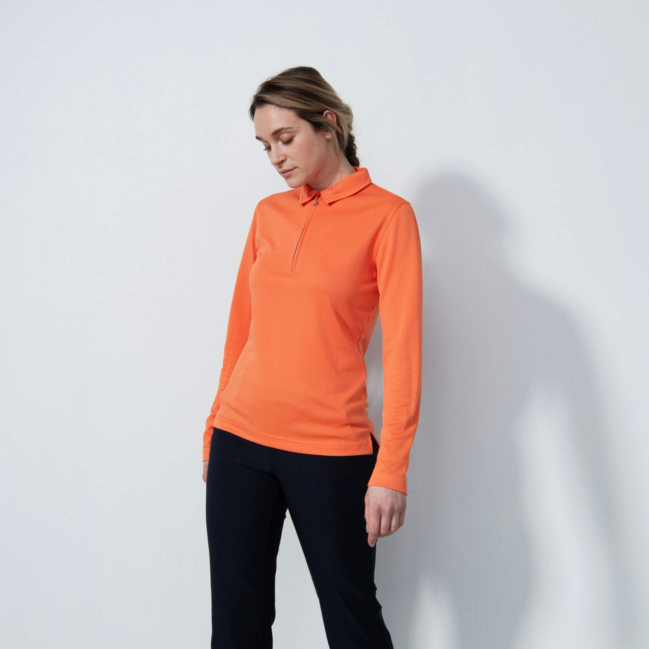 Our Peoria golf polo shirt has long sleeves, a neat collar and a flattering fit. The jacquard-knit fabric adds texture to the sophisticated design. The fabric delivers functional moisture-wicking and quick-dry properties, helping to keep you cool.