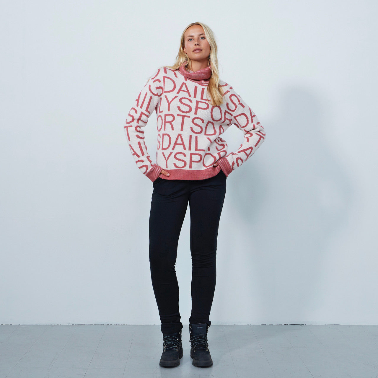 Letters is a warm pullover with a knitted pattern that spells ”Daily Sports”. It features a rib-knitted roll-neck and cuffs and has a comfortable yet stylish fit.