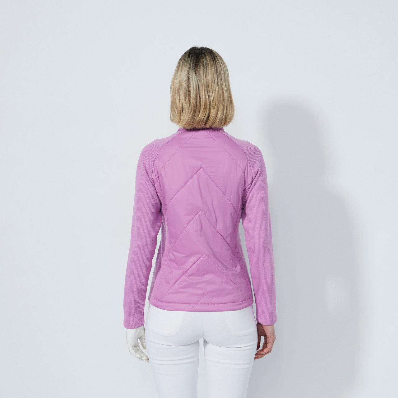 The Quilt Hybrid Jacket blends sophistication with practicality, featuring quilted mini micro at the front and back, and stretchy ribbed knit fabric in sleeves and sides for superior comfort. It’s a versatile layer that transitions effortlessly from the golf course to everyday activities.