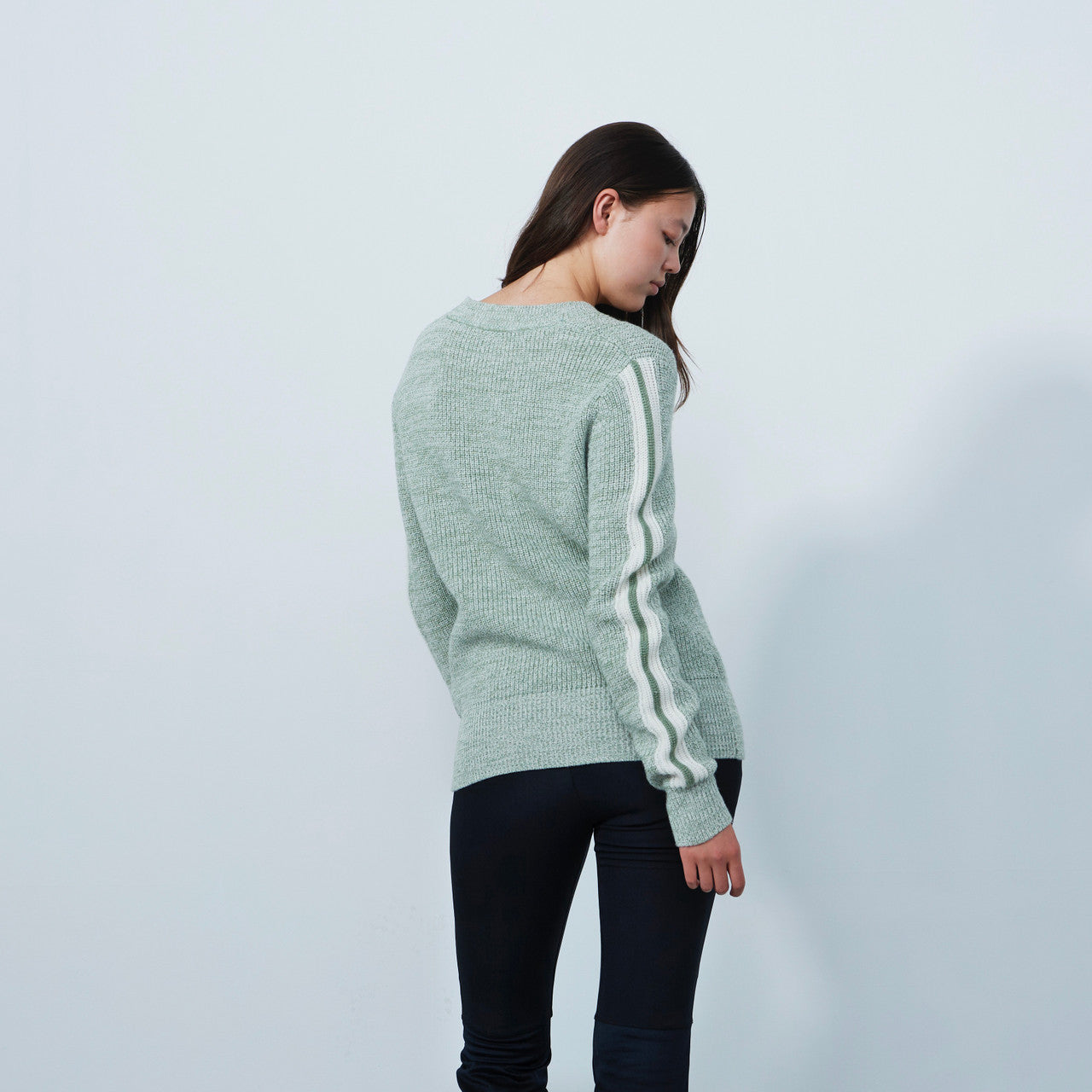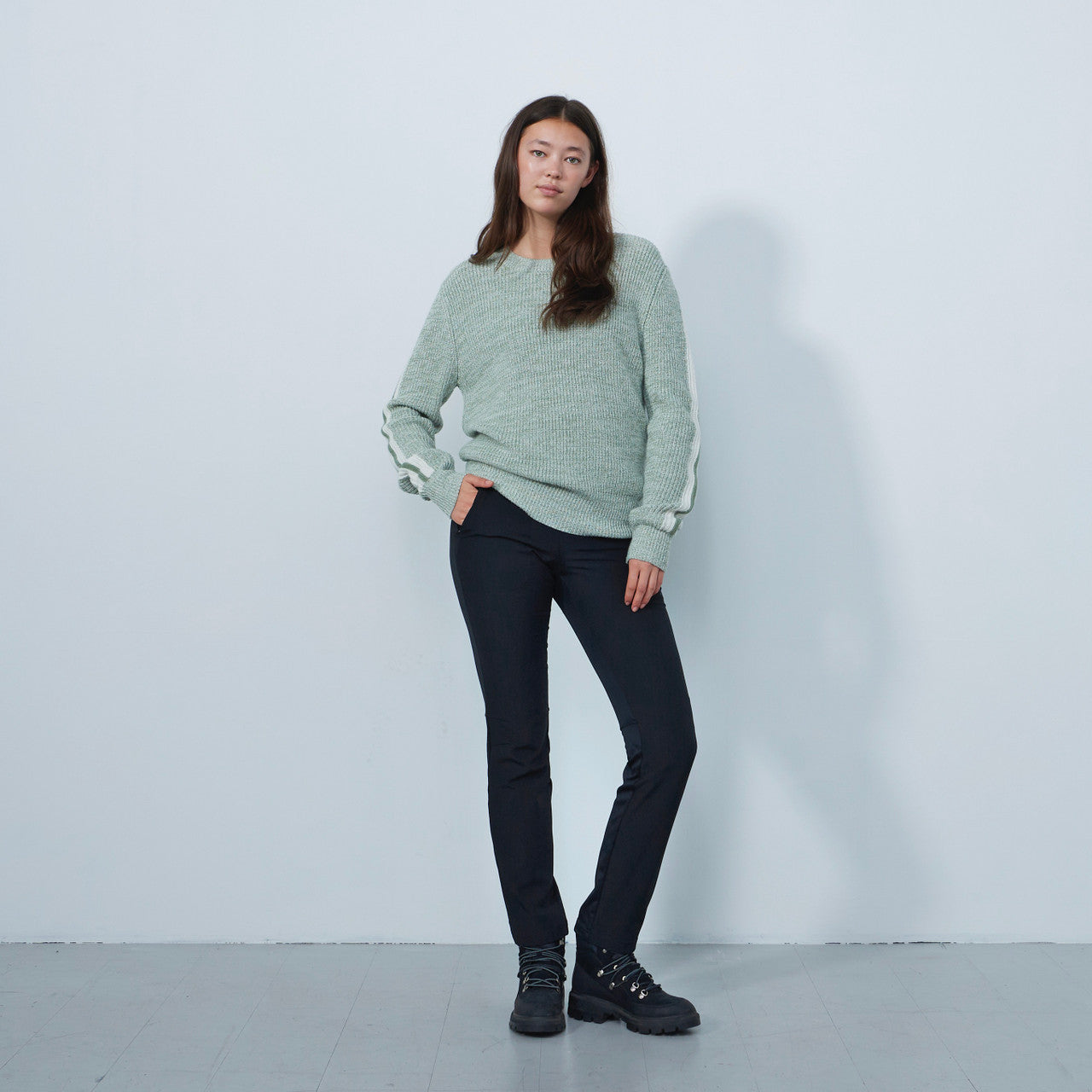 Twisted is a melange knitted pullover with a round neck. It’s crafted from a warm wool blend and features a comfortable fit with a knitted ribbon along the sleeves.