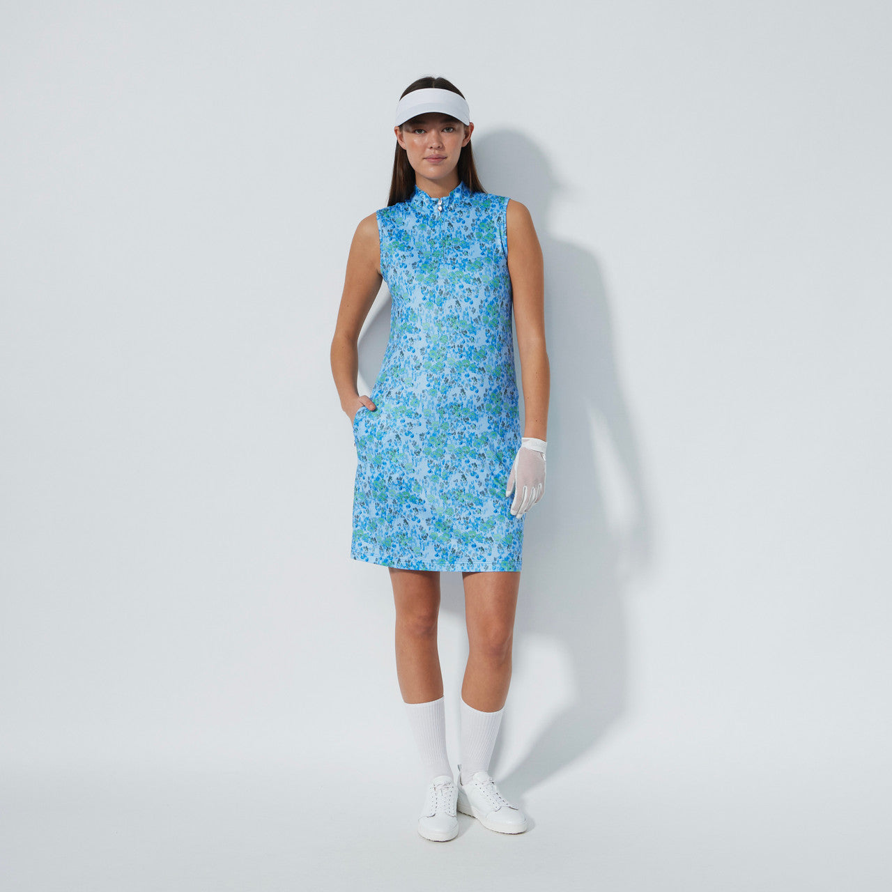 DS Sheermotion Water Bloom Blue Print Sleeveless Dress
