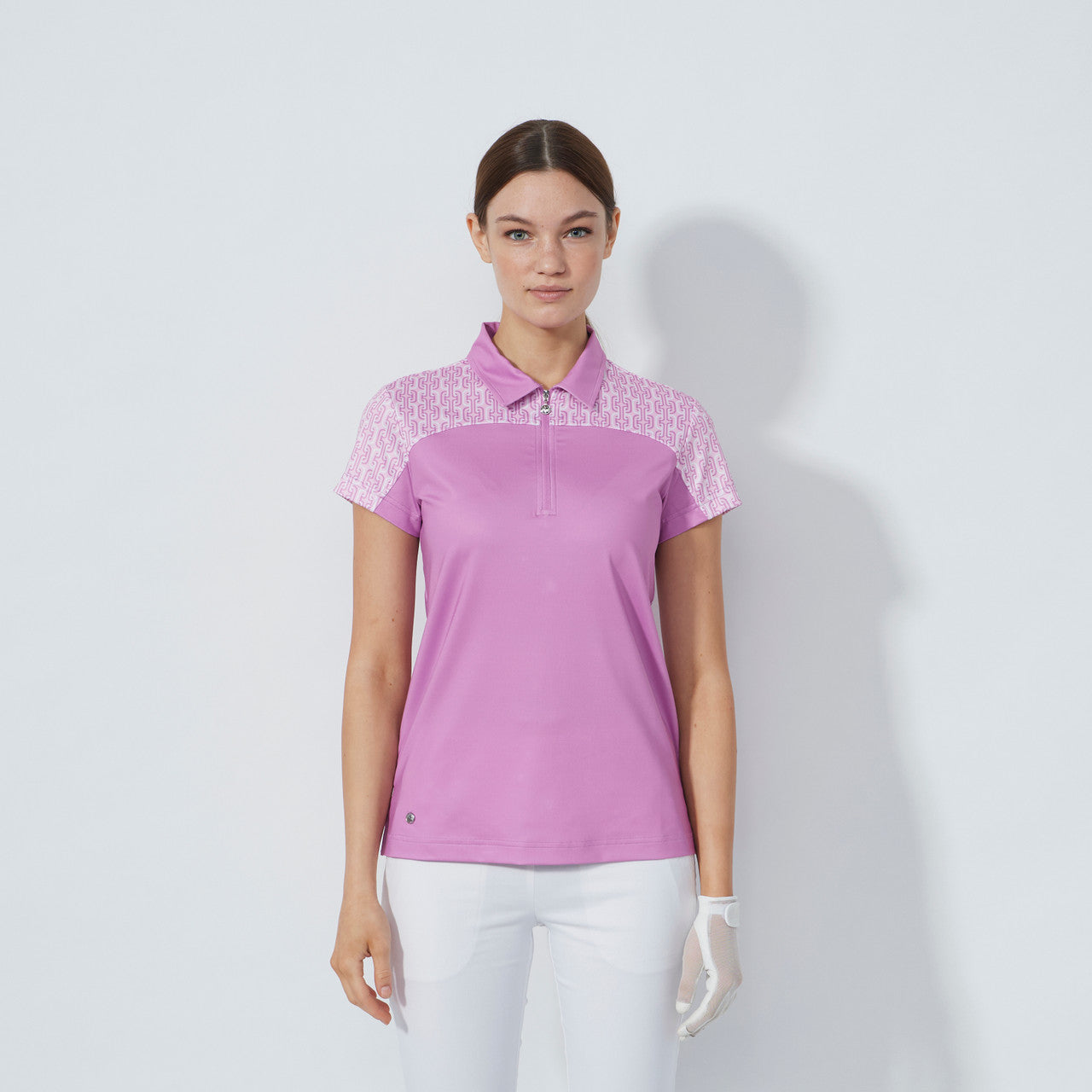 DS Veronica Print Insert Cap Sleeve Polo Shirt