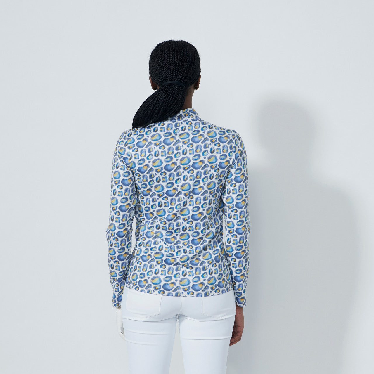 DS Water Leo Print Peached Half Neck Long Sleeve Polo Shirt