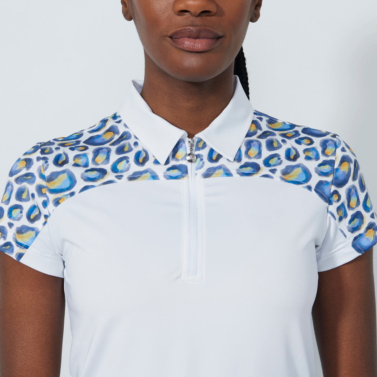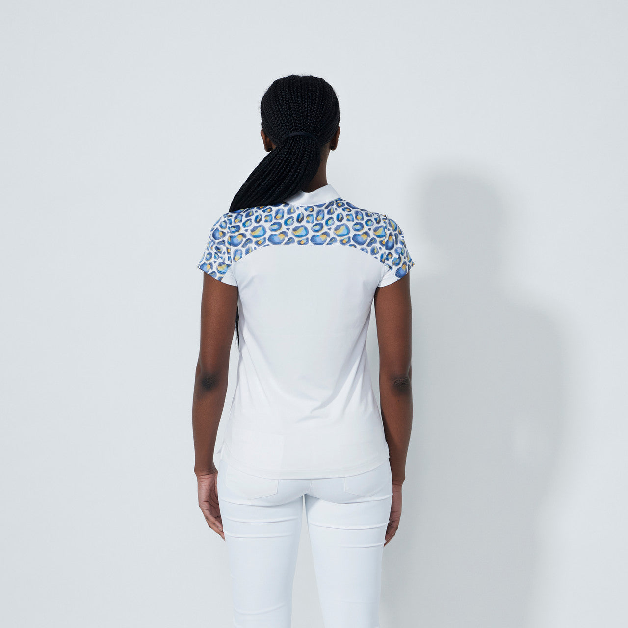 DS White Print Insert Cap Sleeve Polo Shirt