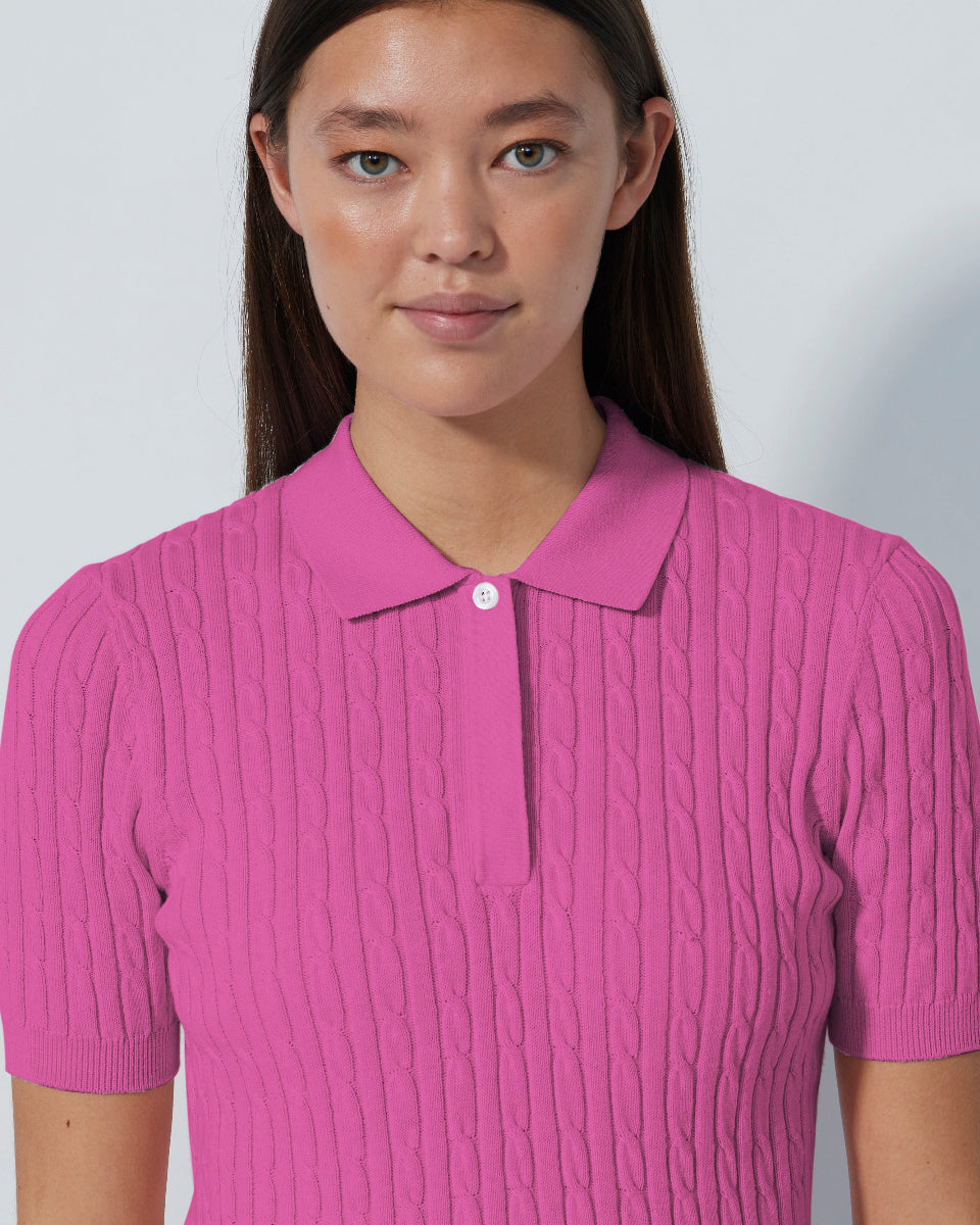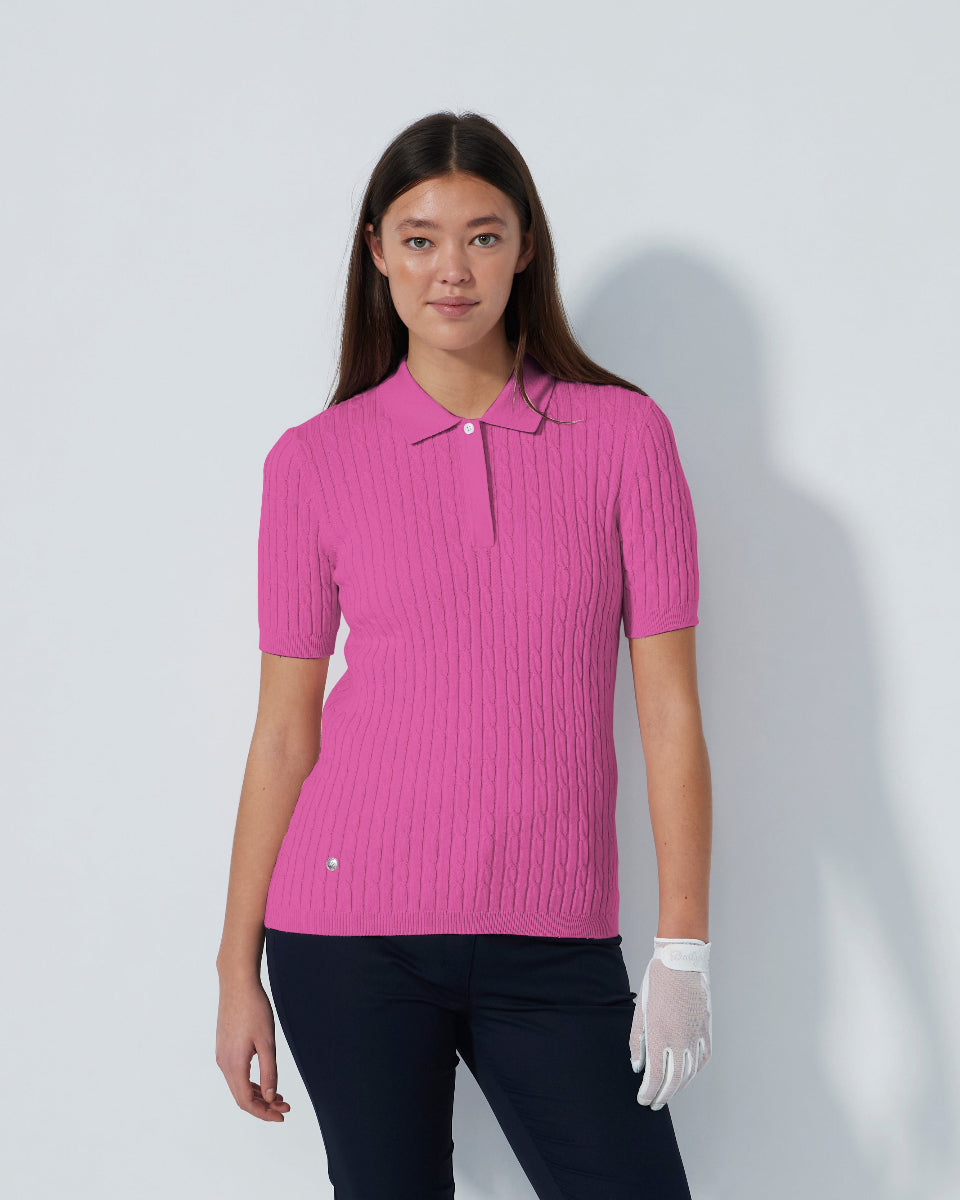 Madelene Cable Knit Short Sleeve Polo Shirt PS26