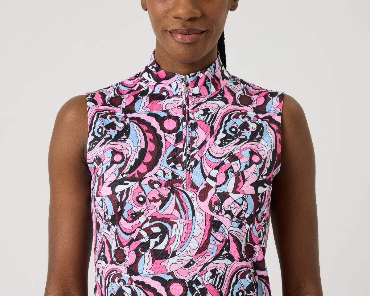 Sheermotion Multi Mix Sleeveless Mock Neck Top