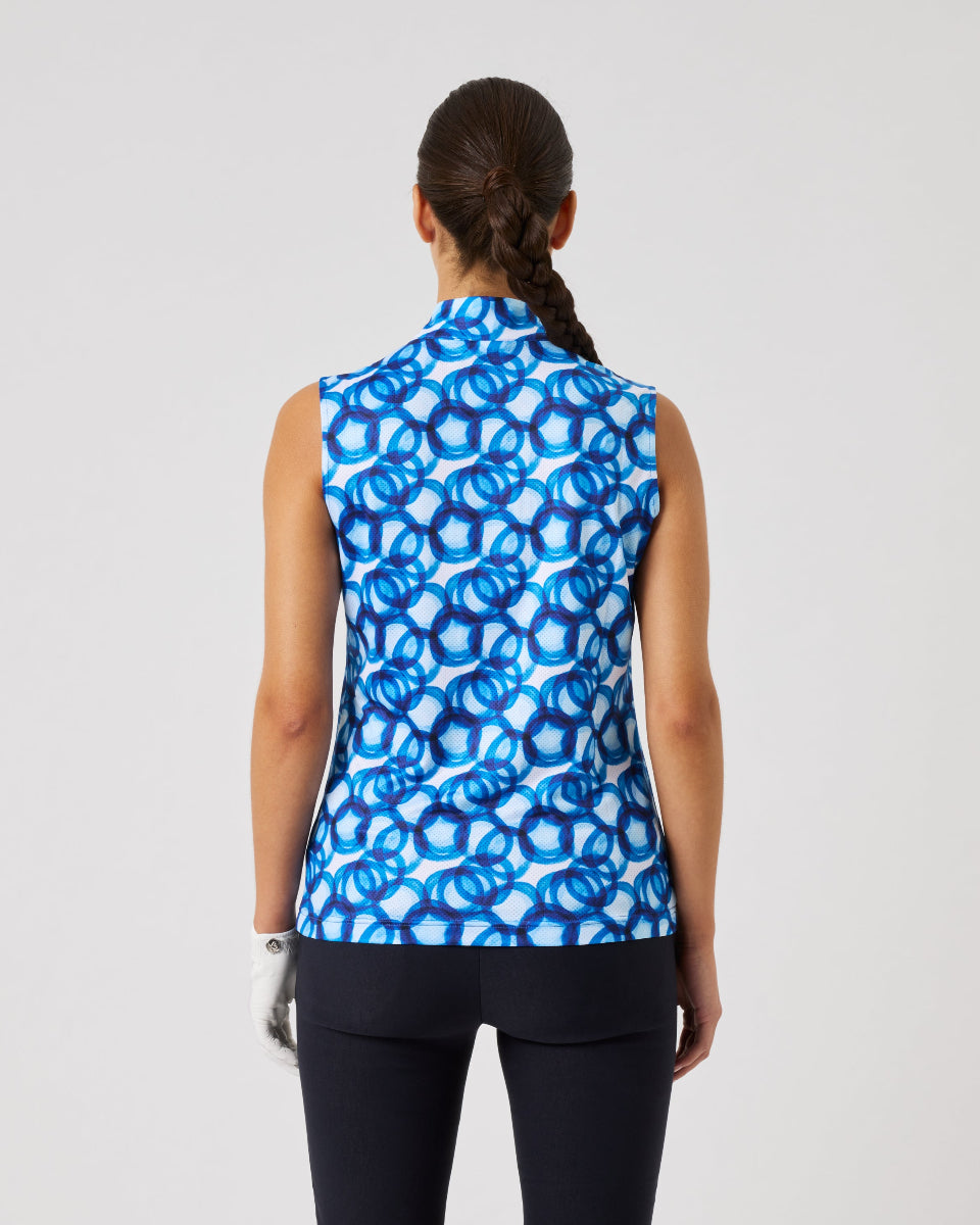 Sheermotion Water Circle Sleeveless Mock Neck Top